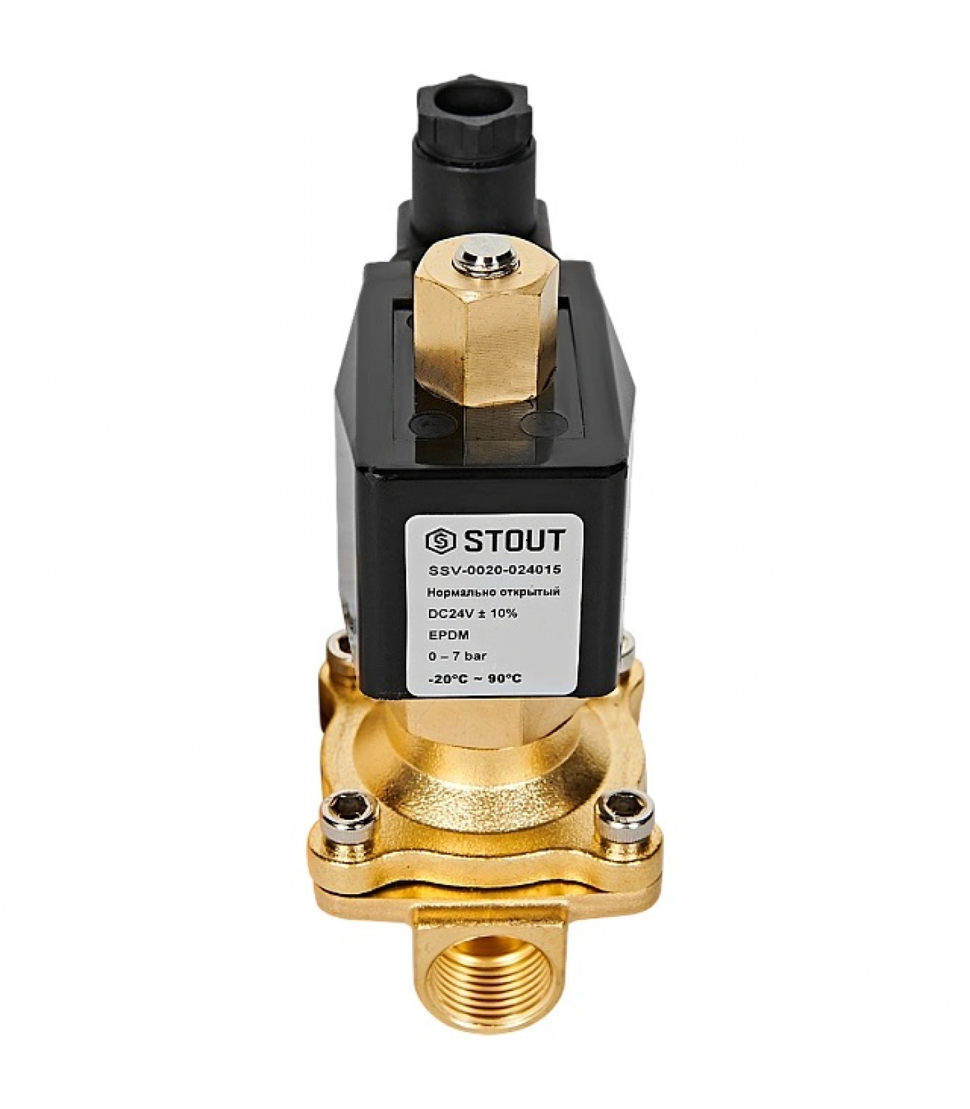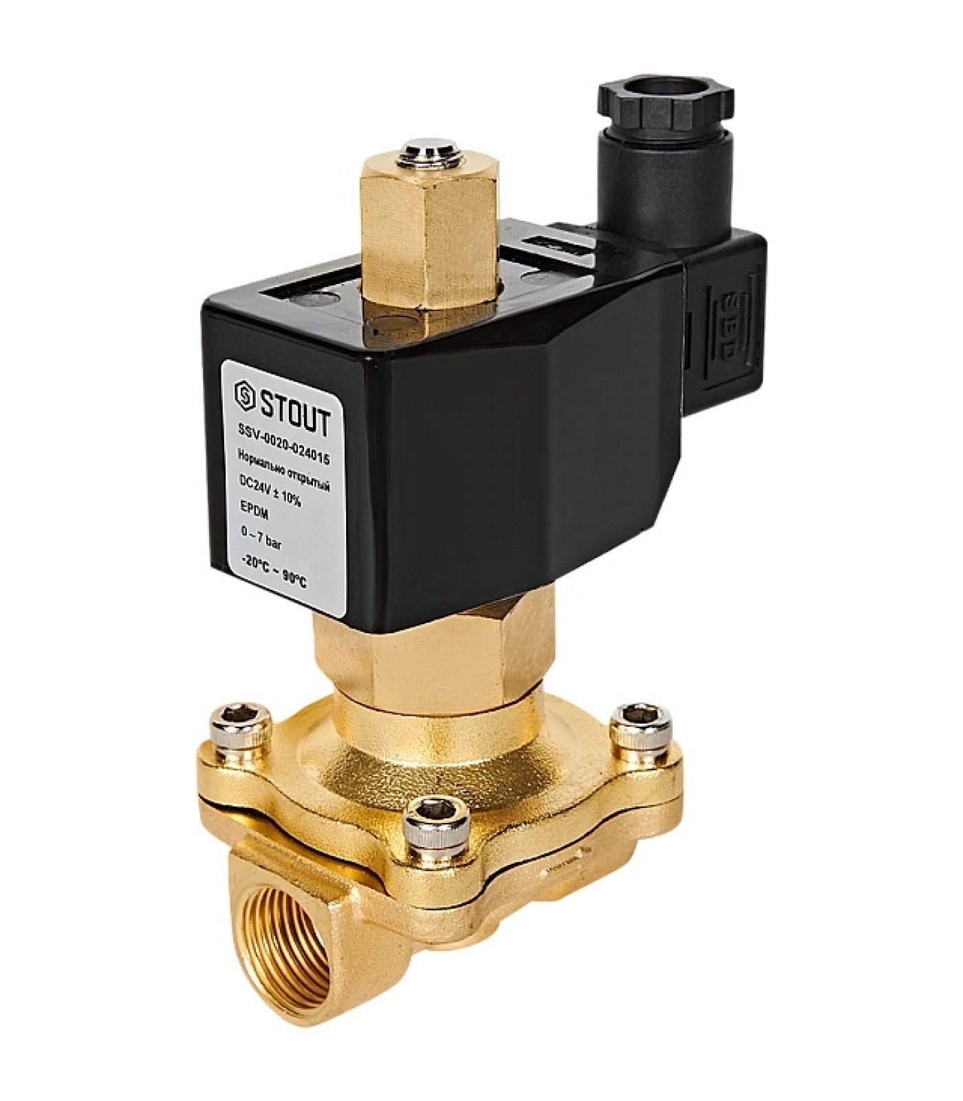 STOUT Клапан соленоидный (электромагнитный), прямого действия, НО, 24В, G1/2, EPDM