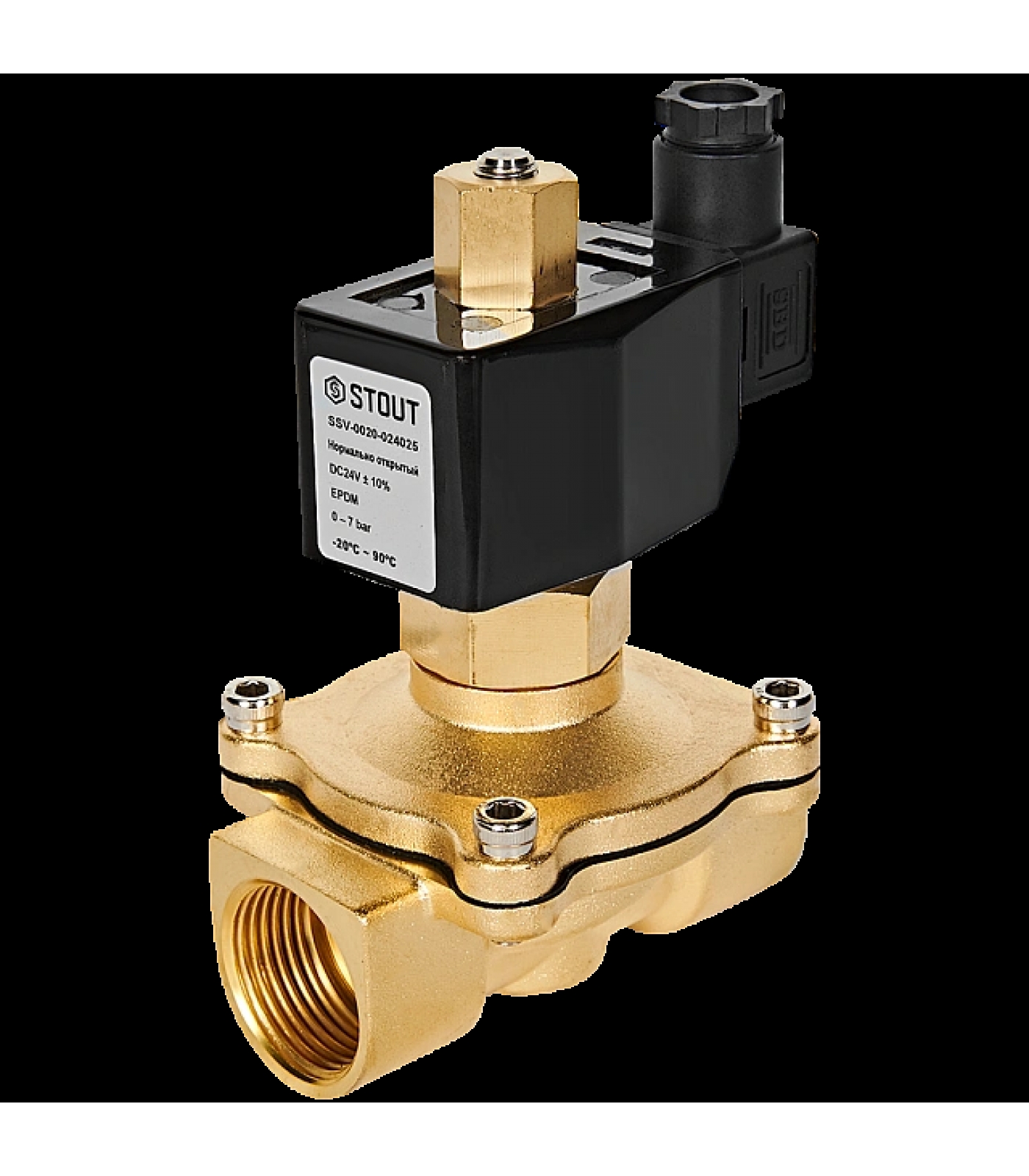 STOUT Клапан соленоидный (электромагнитный), прямого действия, НО, 24В, G1, EPDM