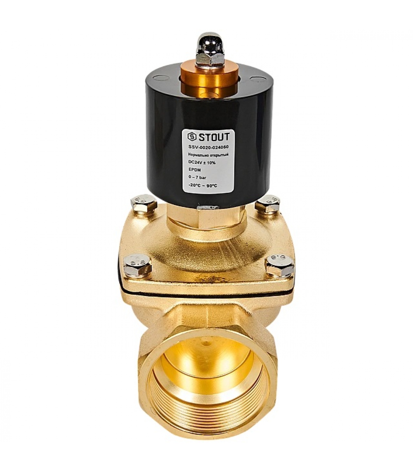 STOUT Клапан соленоидный (электромагнитный), прямого действия, НО, 24В, G2, EPDM