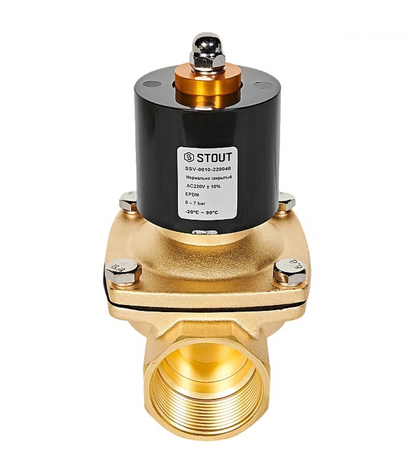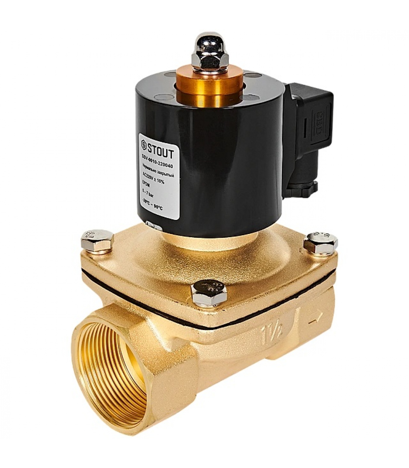 STOUT Клапан соленоидный (электромагнитный), прямого действия, НЗ, 220В, G1 1/2, EPDM