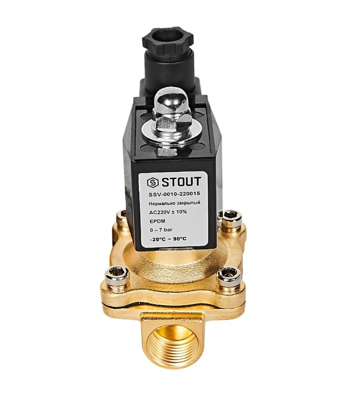 STOUT Клапан соленоидный (электромагнитный), прямого действия, НЗ, 220В, G1/2, EPDM