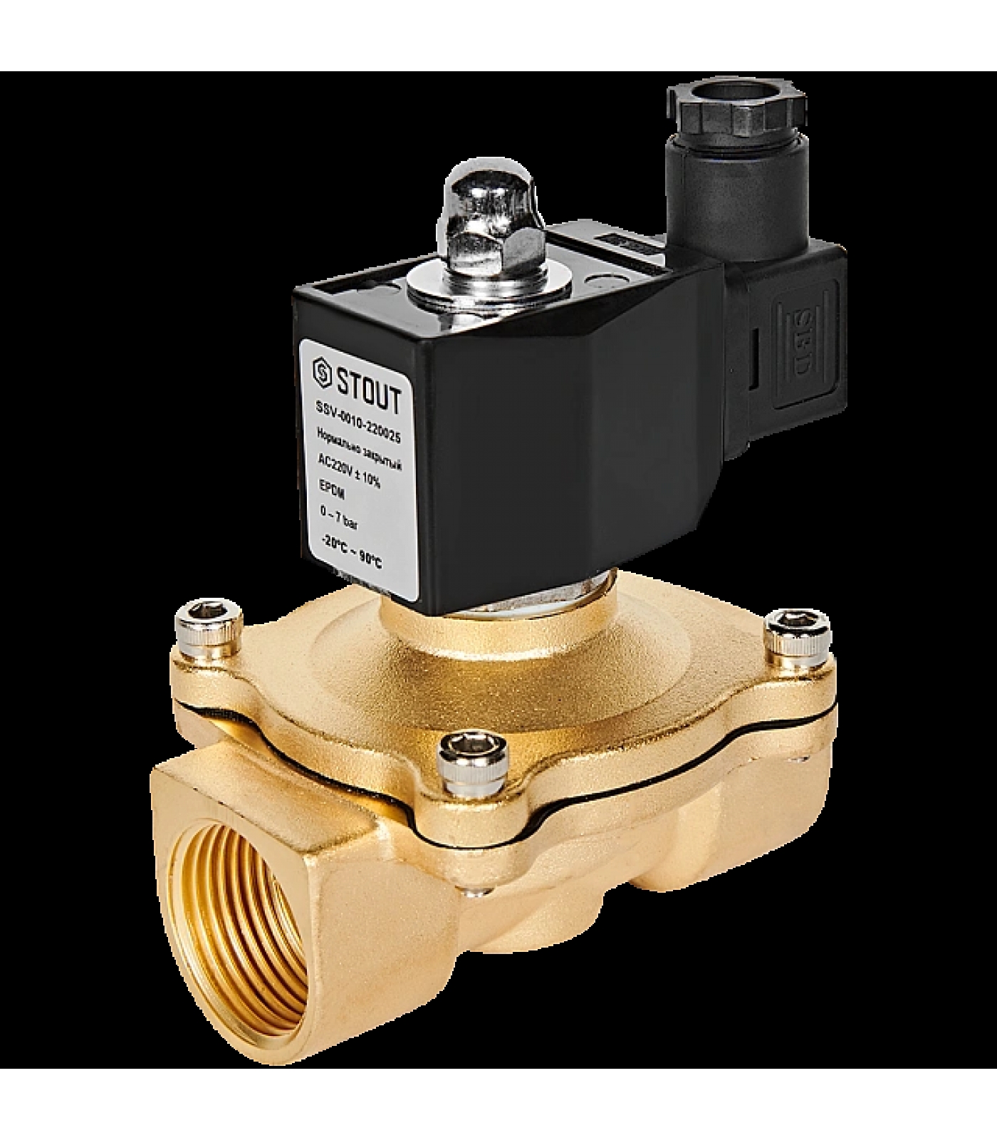 STOUT Клапан соленоидный (электромагнитный), прямого действия, НЗ, 220В, G1, EPDM