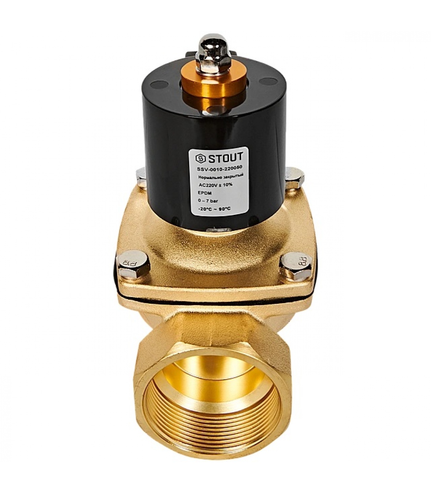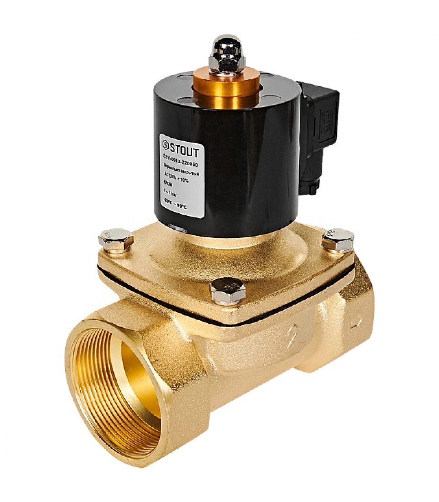 STOUT Клапан соленоидный (электромагнитный), прямого действия, НЗ, 220В, G2, EPDM