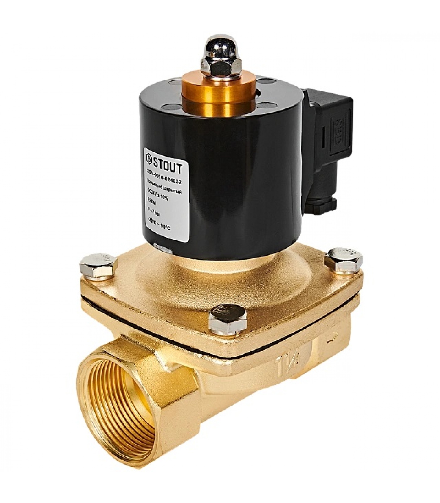 STOUT Клапан соленоидный (электромагнитный), прямого действия, НЗ, 24В, G1 1/4, EPDM