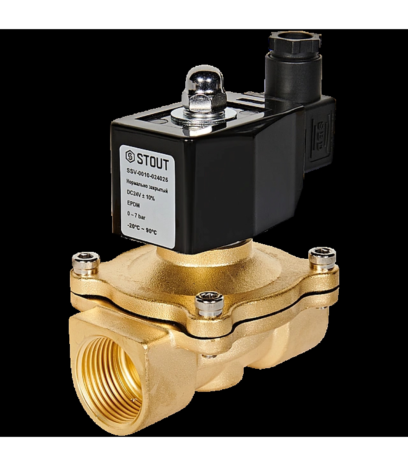STOUT Клапан соленоидный (электромагнитный), прямого действия, НЗ, 24В, G1, EPDM