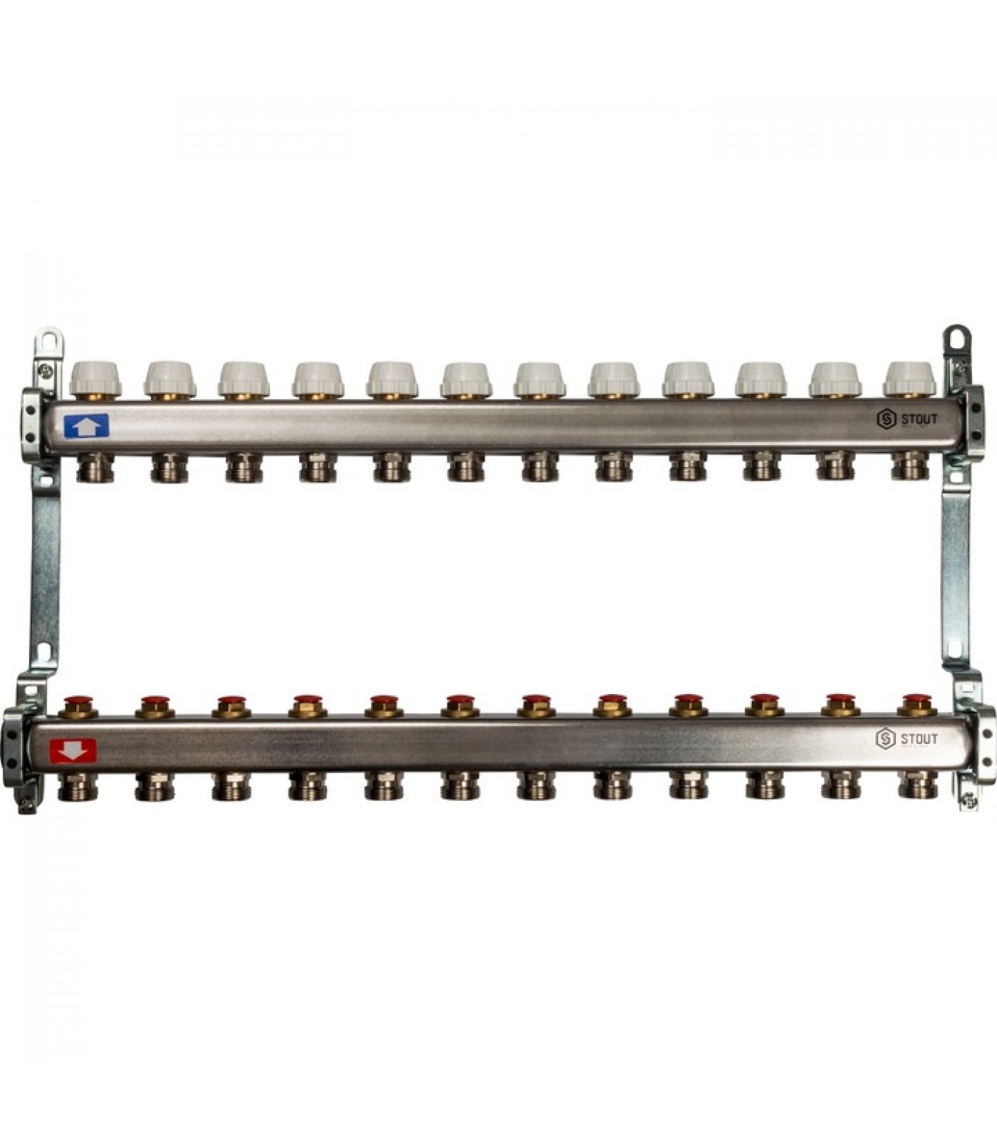 Коллектор из нержавеющей стали STOUT без расходомеров 12 вых.