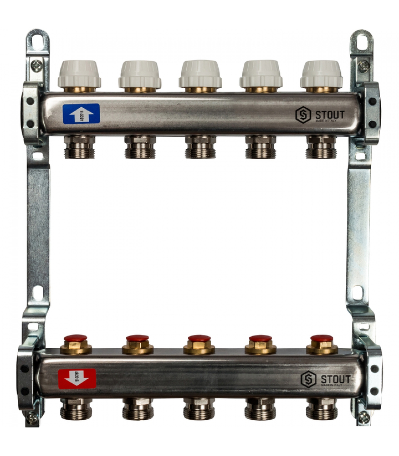 Коллектор из нержавеющей стали STOUT без расходомеров 5 вых.