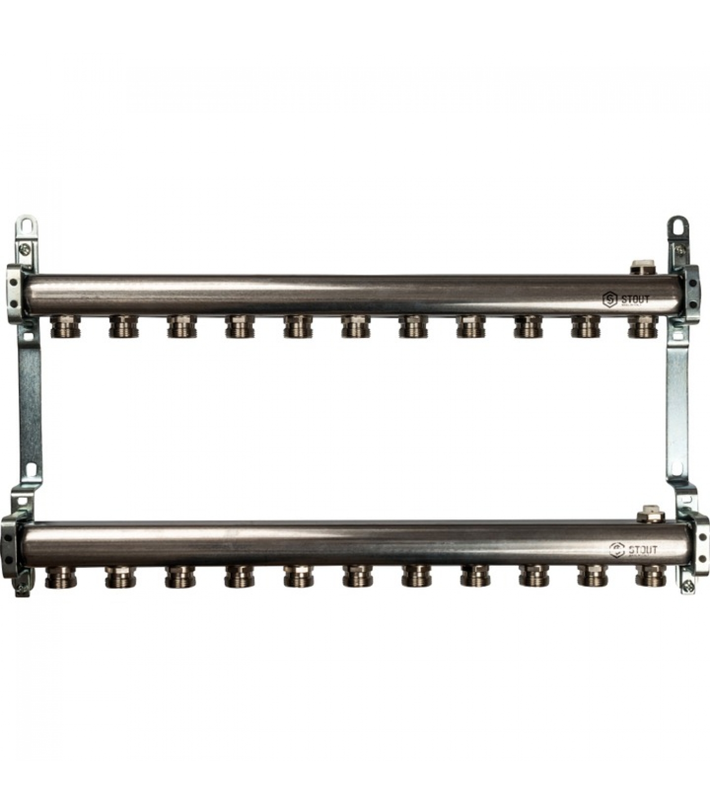 Коллектор из нержавеющей стали STOUT для радиаторной разводки 11 вых.