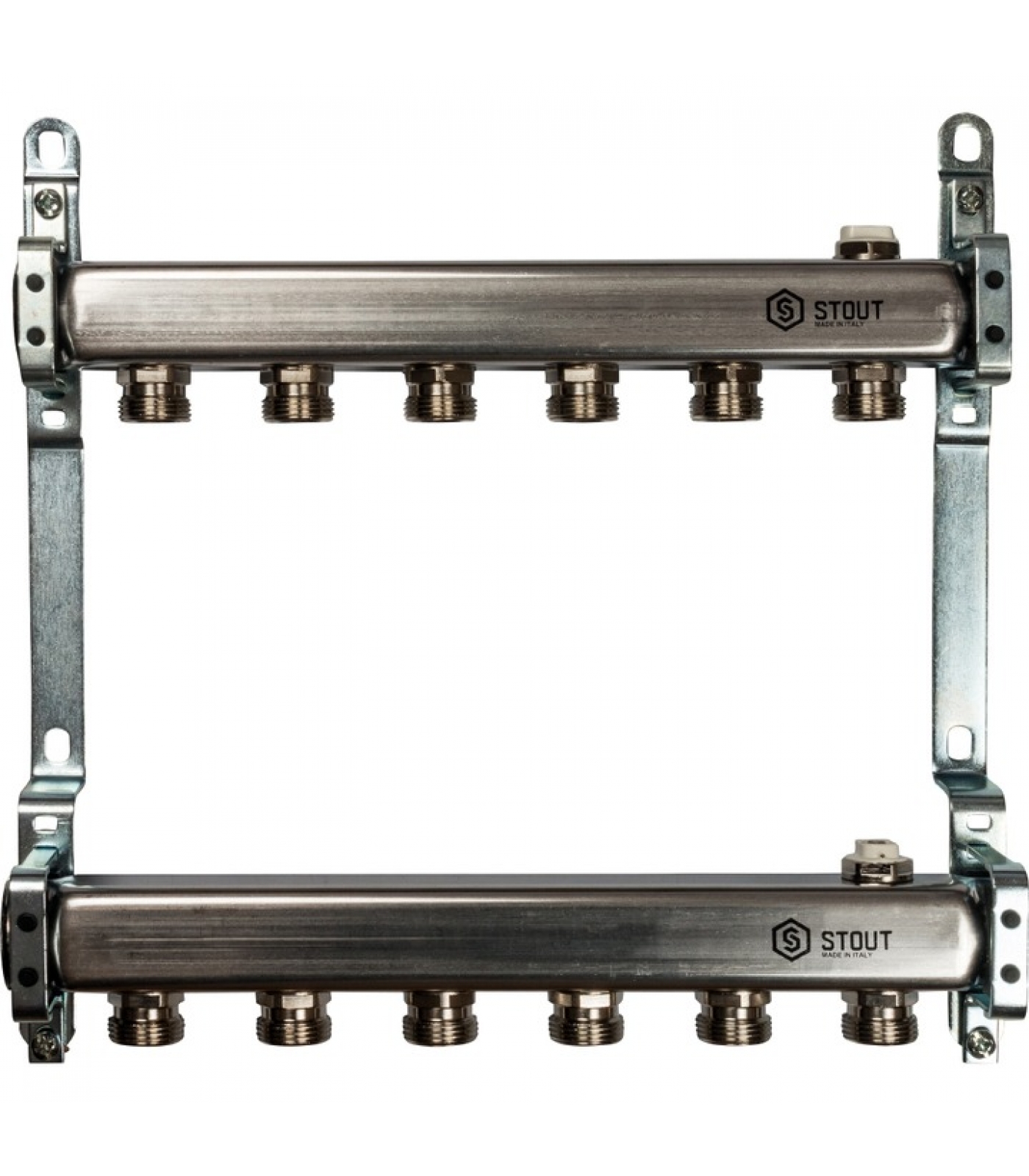 Коллектор из нержавеющей стали STOUT для радиаторной разводки 6 вых.