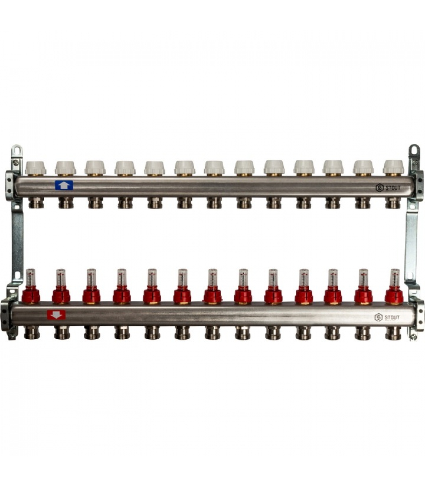 Коллектор из нержавеющей стали STOUT с расходомерами 13 вых.