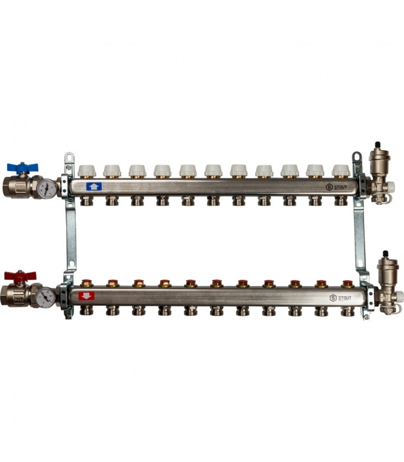 Коллектор из нержавеющей стали STOUT в сборе без расходомеров 11 вых.