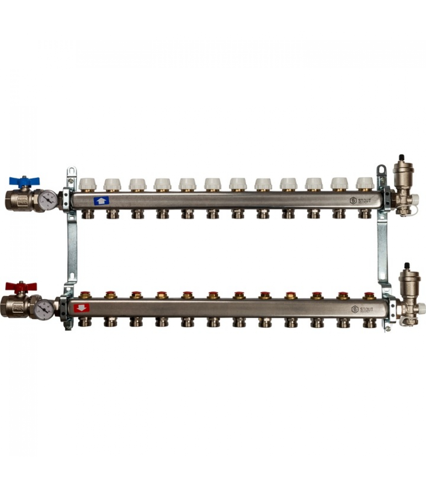 Коллектор из нержавеющей стали STOUT в сборе без расходомеров 12 вых.