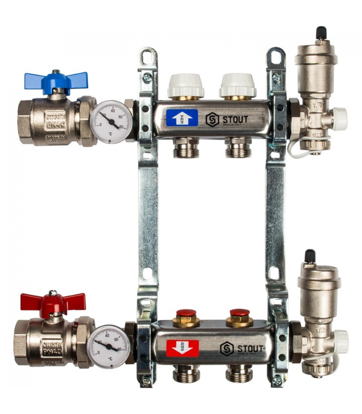 Коллектор из нержавеющей стали STOUT в сборе без расходомеров 2 вых.
