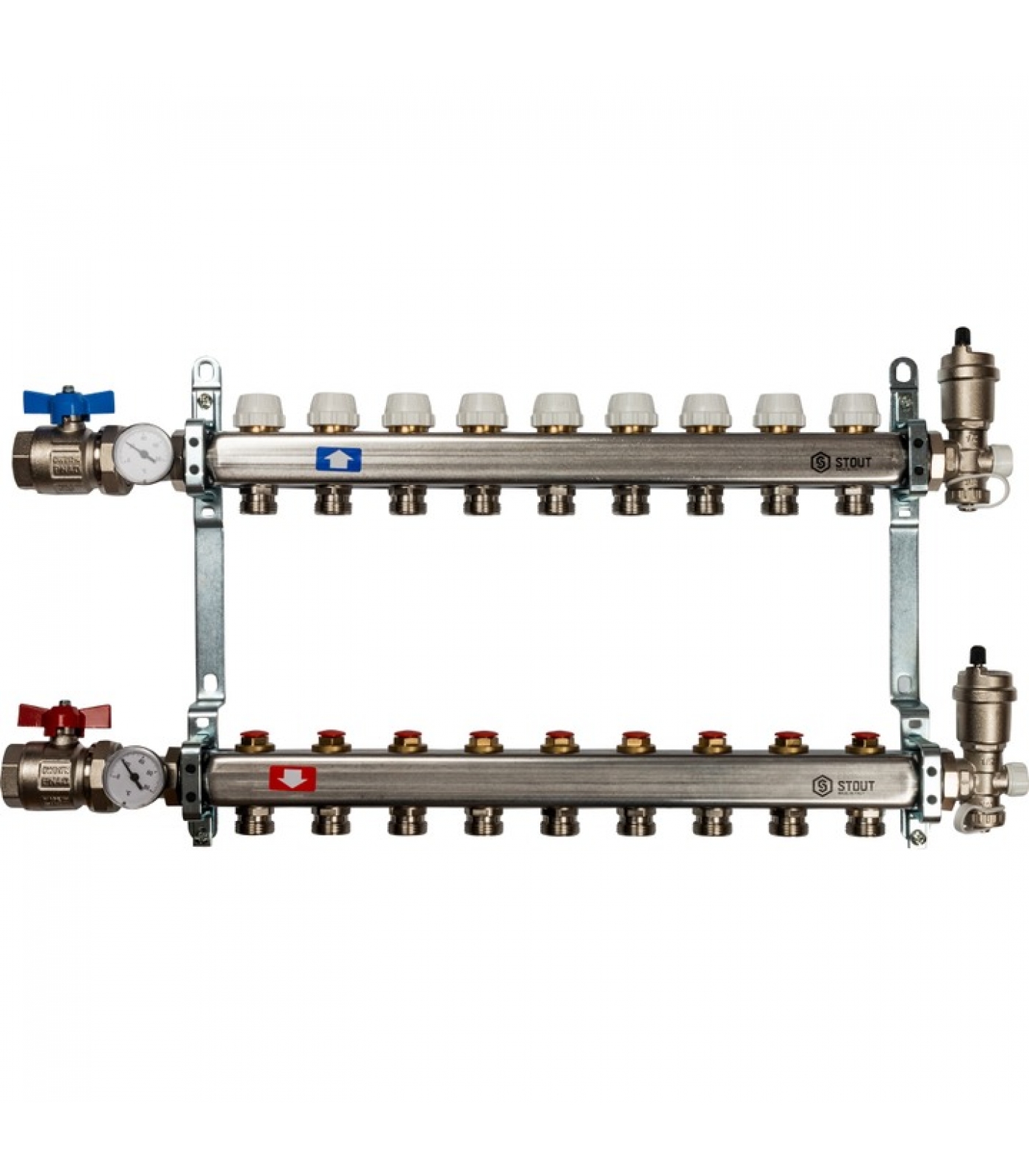 Коллектор из нержавеющей стали STOUT в сборе без расходомеров 9 вых.