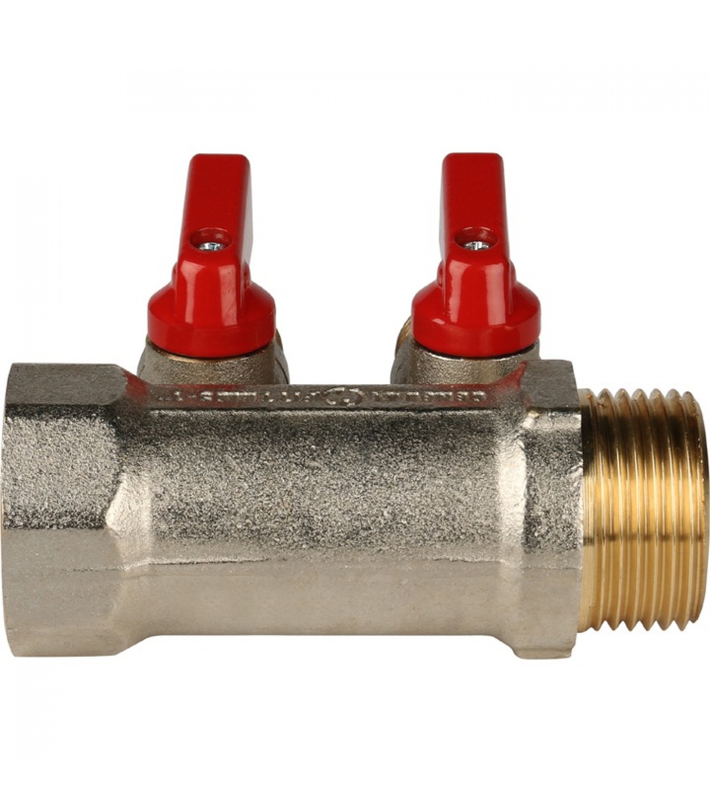 Коллектор с шаровыми кранами STOUT 1", 2 отвода 1/2" (красные ручки)