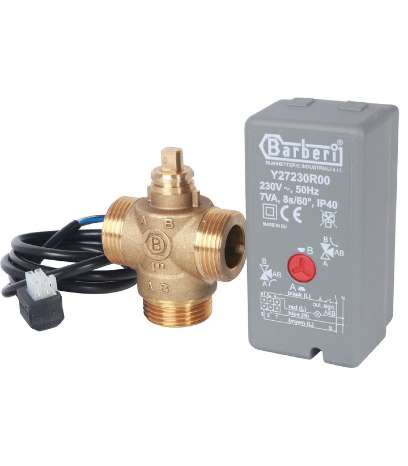 Компактный 3-Ходовой зональный клапан, сервопривод 230V, с кабелем 1м., STOUT НР 1"