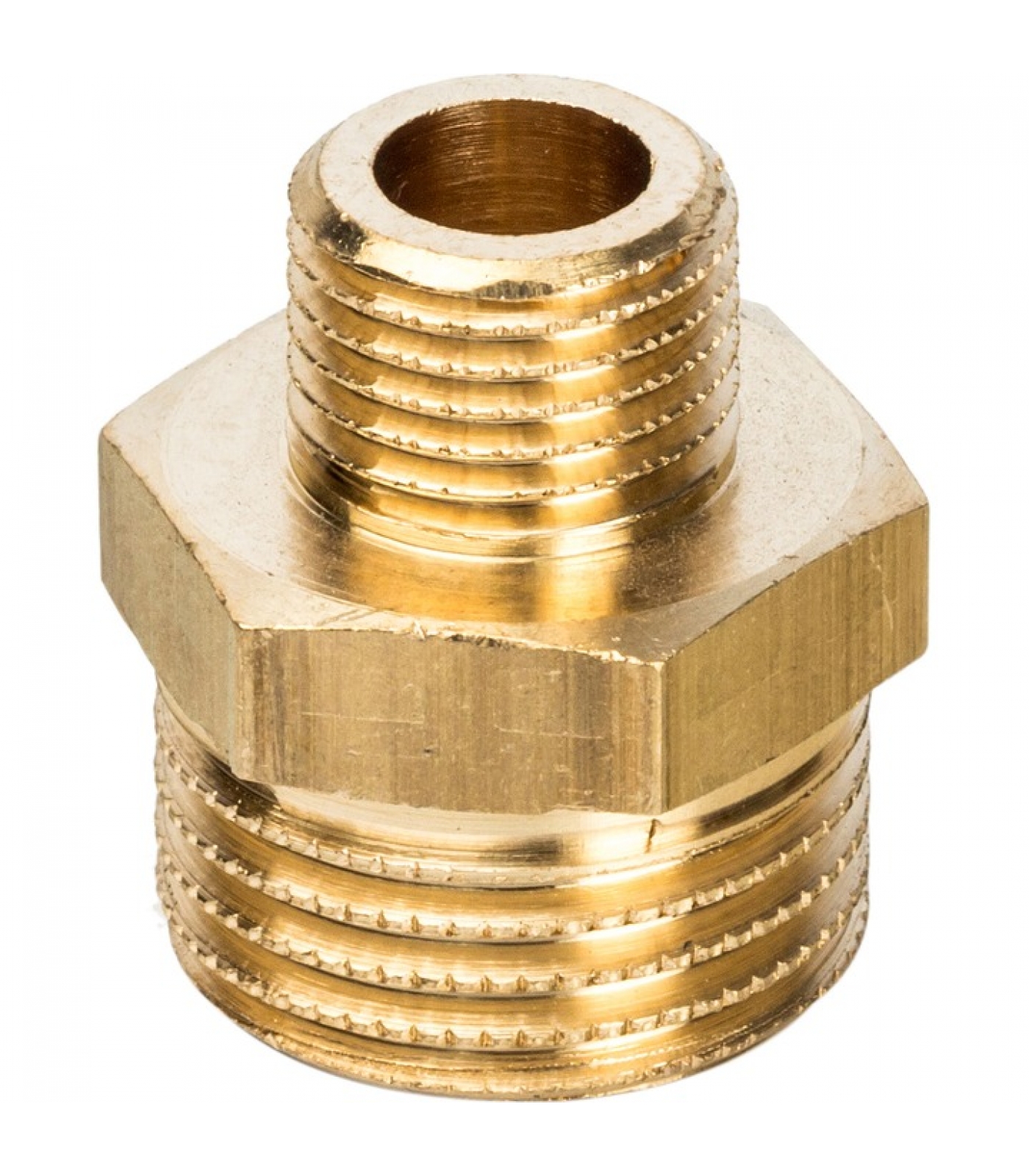 Ниппель переходной – фитинг, с помощью которого резьбовым способом соединяют детали трубопровода разного диаметра. Тип резьбы – наружная/наружная, цилиндрической формы. Каждый резьбовой ниппель имеет посередине участок шестигранной формы – специально для удобного захвата детали гаечным ключом и, следовательно, для упрощения процесса монтажа. На резьбе имеются насечки, которые помогают фиксировать герметизирующий материал.