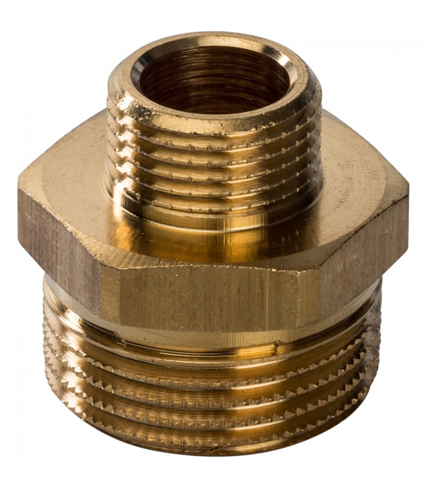 Ниппель переходной – фитинг, с помощью которого резьбовым способом соединяют детали трубопровода разного диаметра. Тип резьбы – наружная/наружная, цилиндрической формы. Каждый резьбовой ниппель имеет посередине участок шестигранной формы – специально для удобного захвата детали гаечным ключом и, следовательно, для упрощения процесса монтажа. На резьбе имеются насечки, которые помогают фиксировать герметизирующий материал.