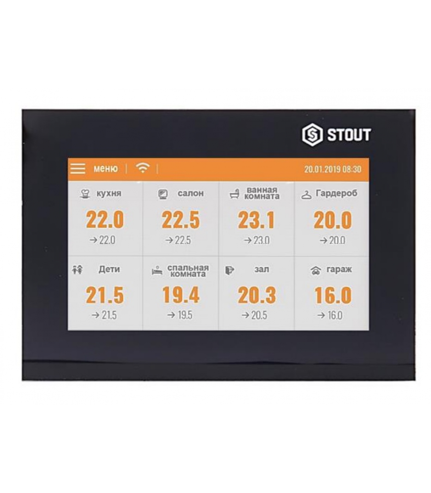 Проводная контрольная панель управления M-7 STOUT предназначена для работы с контроллером L-7, ее основная задача управлять работой напольного нагревательного оборудования. Панель M-7 STOUT отвечает за управление и просмотр параметров всей системы управления внутрипольным отоплением, даёт возможность изменять заданную температуру в каждой зоне, устанавливать недельный график заданной температуры или возможность выключать отопление в отдельных зонах.