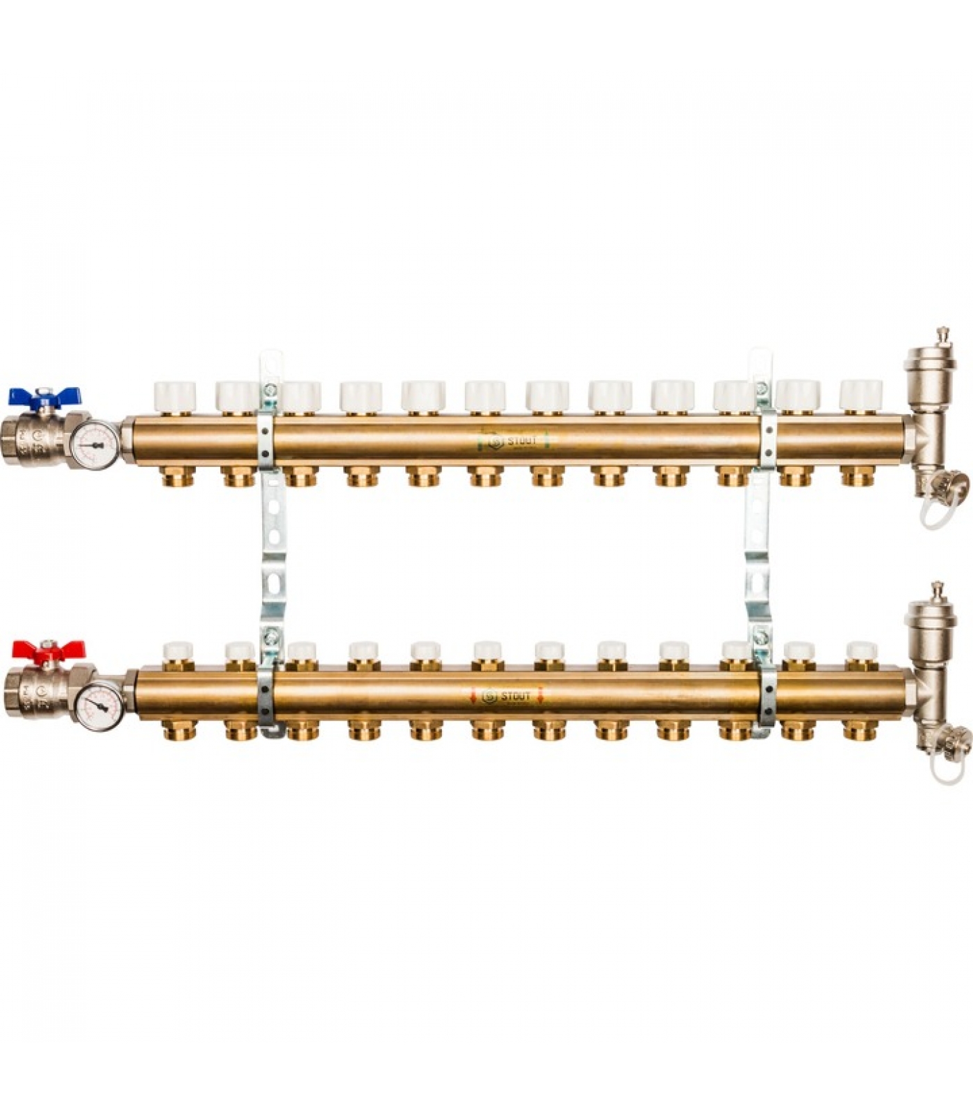 Распределительный коллектор из латуни STOUT без расходомеров 12 вых.