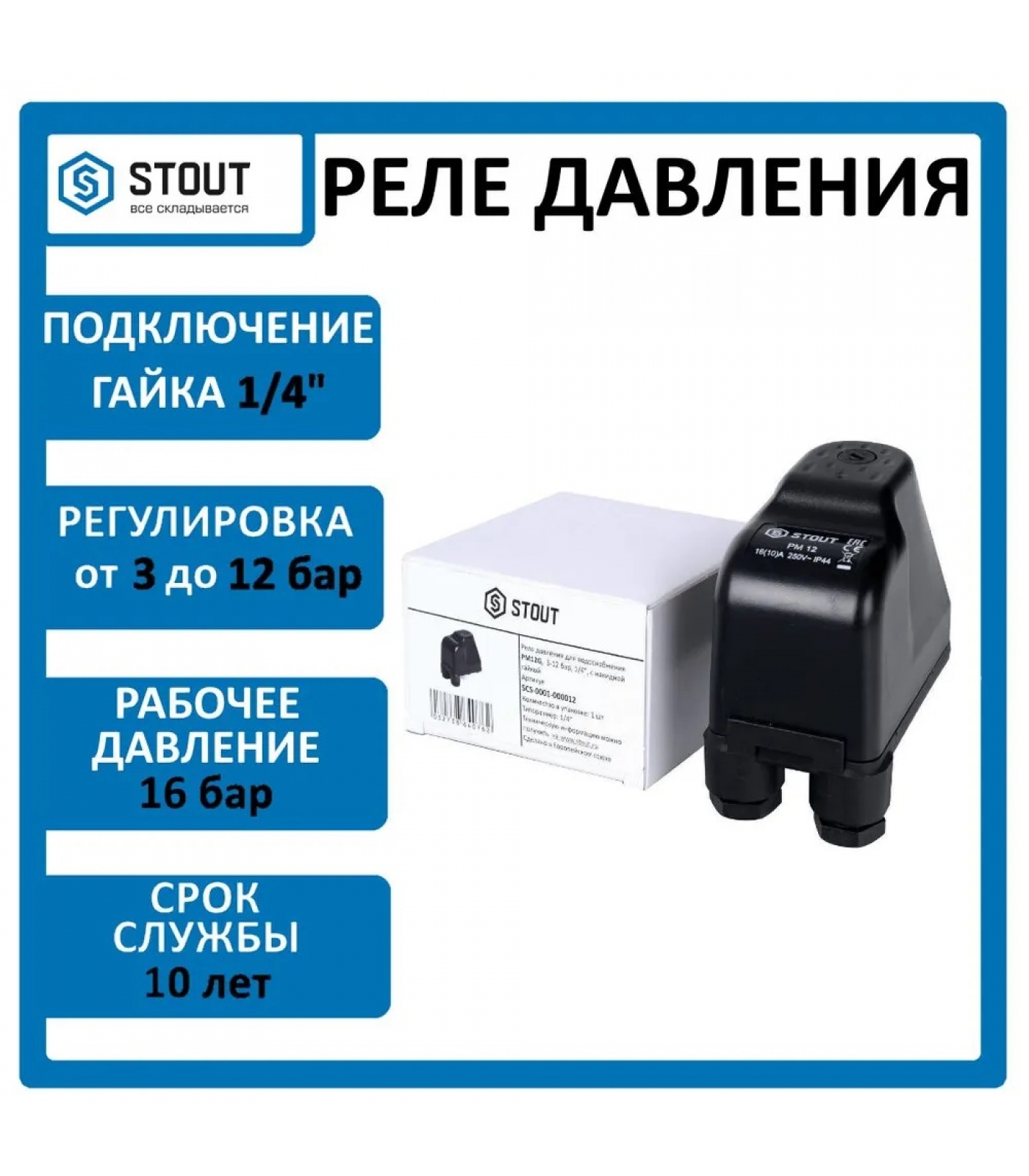 Реле давления для водоснабжения STOUT SCS-0001 PM12G, 3-12 бар,1/4", с накидной гайкой