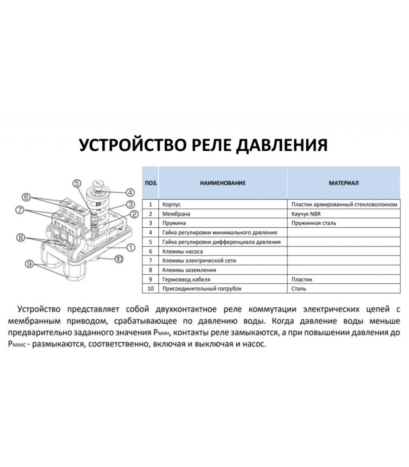 Реле устанавливается в водозаборных установках систем водоснабжения, поливочных установках и системах пожаротушения.