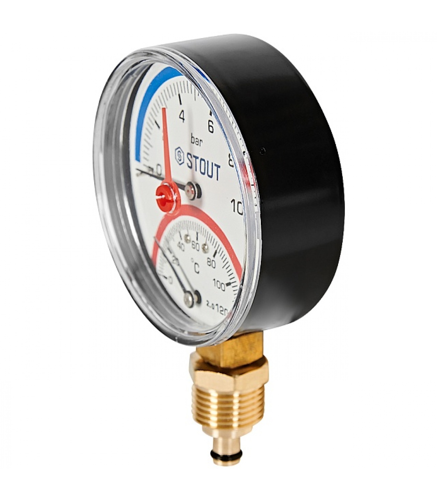 STOUT Термоманометр радиальный в комплекте с автоматическим запорным клапаном. Корпус Dn 80 мм 1/2 , 0...120°C, 0-10 бар.