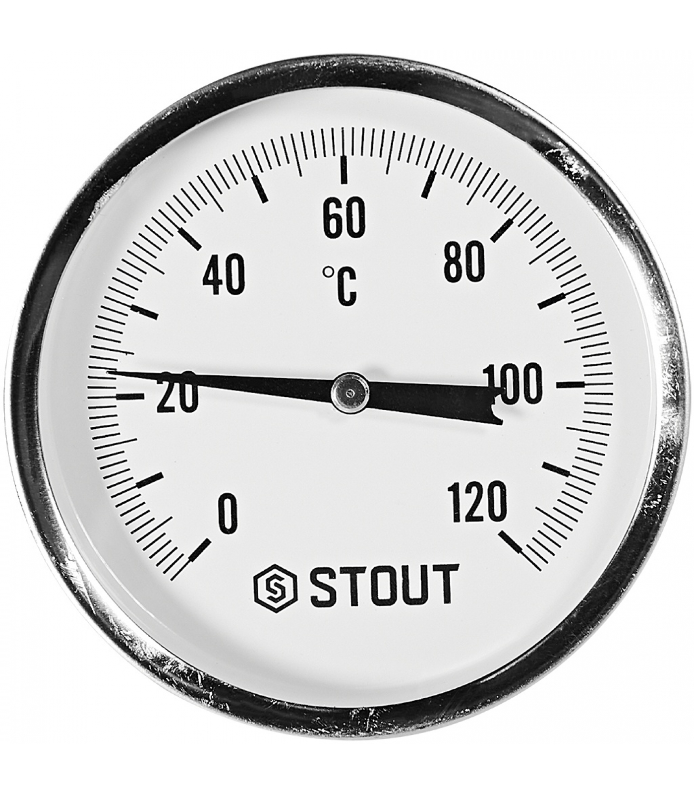 STOUT Термометр биметаллический с погружной гильзой. Корпус Dn 80 мм, гильза 100 мм 1/2 , 0...120°С