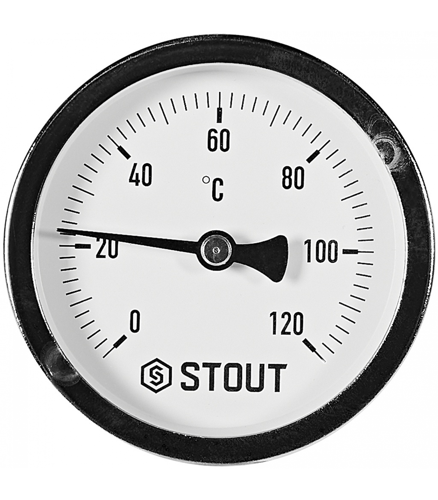 STOUT Термометр биметаллический с погружной гильзой. Корпус Dn 63 мм, гильза 75 мм 1/2 , 0...120°С