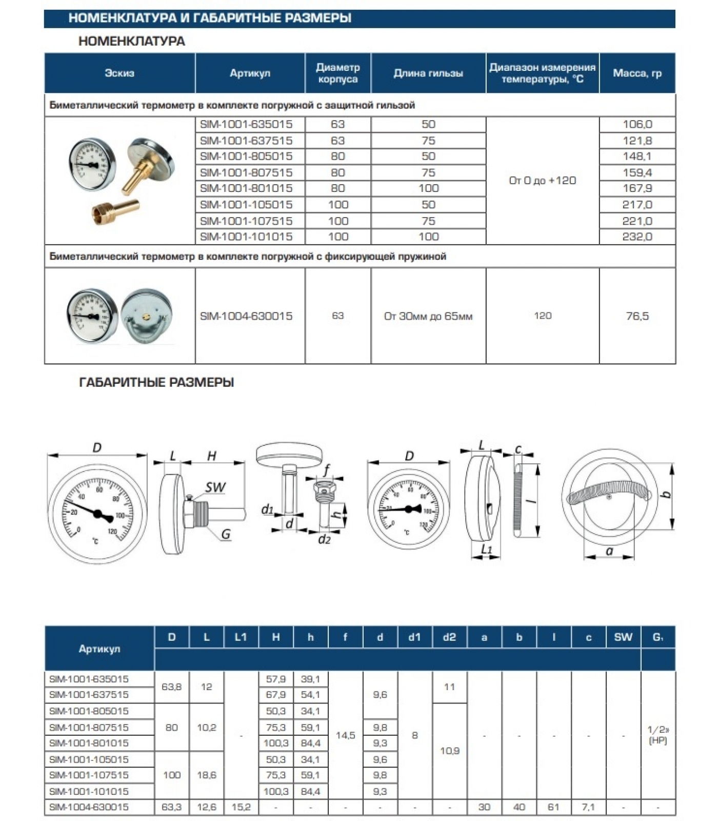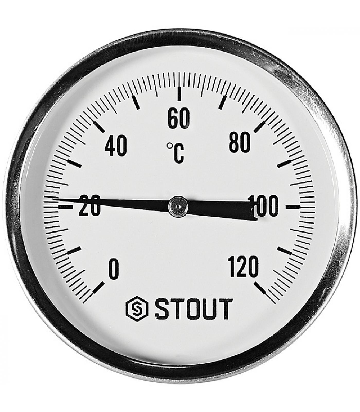STOUT Термометр биметаллический с погружной гильзой. Корпус Dn 80 мм, гильза 75 мм 1/2 , 0...120°С