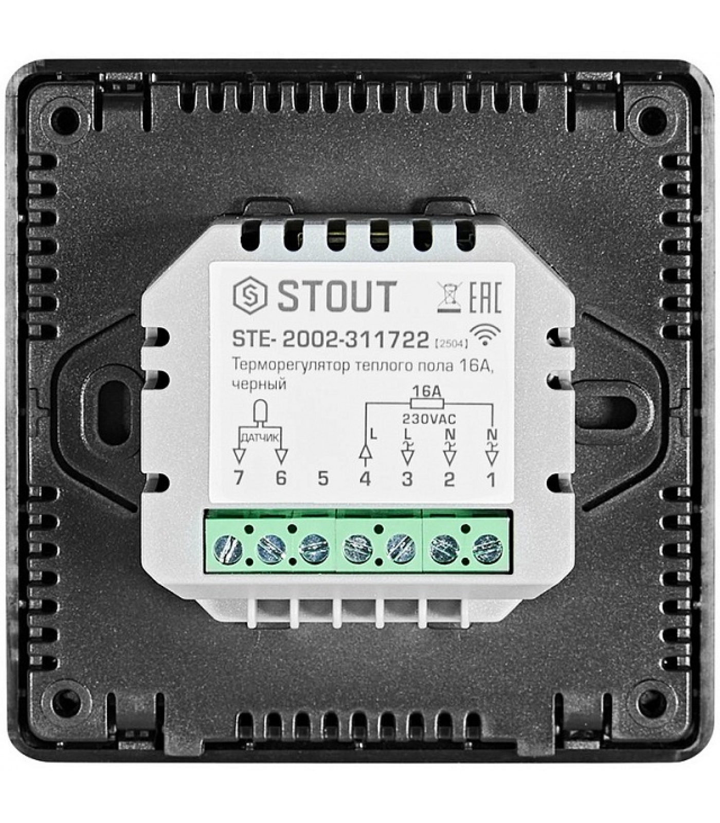 Комнатные терморегуляторы с цветным сенсорным экраном STE-2002 STOUT предназначены для управления электрическими нагревательными приборами, электротермическими исполнительными механизмами или иными устройствами с питанием 230В (не превышающими коммутирующую мощность терморегулятора). При этом терморегуляторы STE-2002-331222, STE2002-331212 также могут управлять различными устройствами через беспотенциальный контакт (например: котлом, емкостным водонагревателем или иным устройством). Терморегулятор поддерживает заданную температуру в помещении путем подачи напряжения на силовые клеммы или путем замыкания/размыкания беспотенциальных контактов.