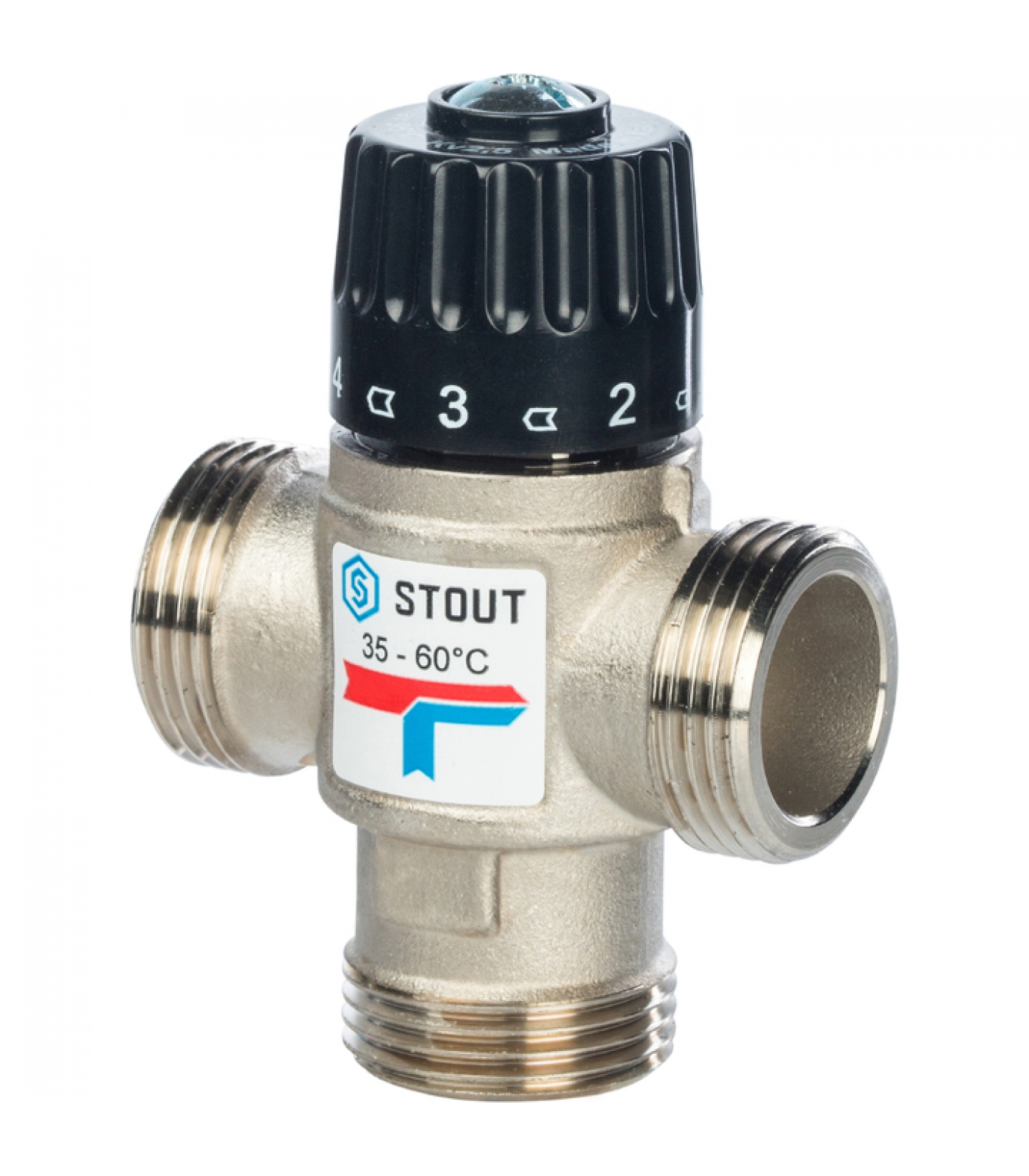 Термостатический смесительный клапан STOUT для систем отопления и ГВС 1" НР 35-60°С KV 2,5