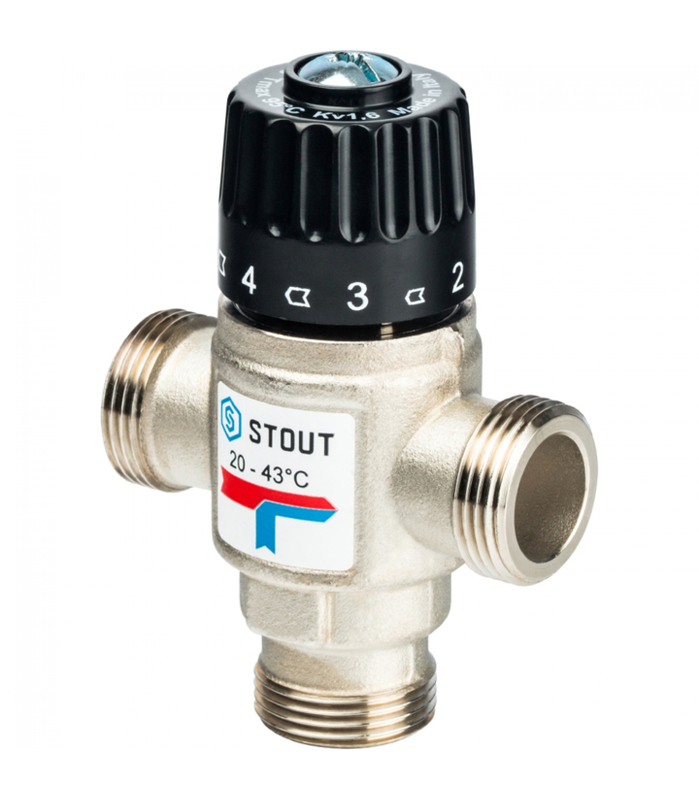 Термостатический смесительный клапан STOUT для систем отопления и ГВС 3/4" НР 20-43°С KV 1,6