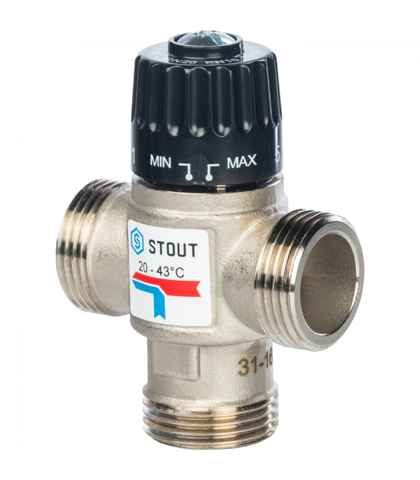 Термостатический смесительный клапан STOUT для систем отопления и ГВС. G1 НР 20-43°С KV 1,6