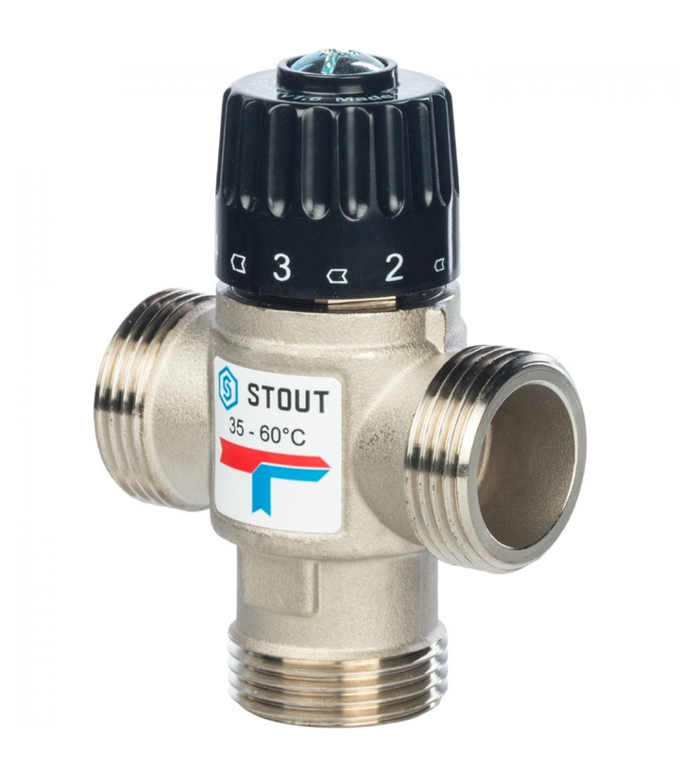 STOUT Термостатический смесительный клапан для систем отопления и ГВС 1" НР 35-60°С KV 1,6