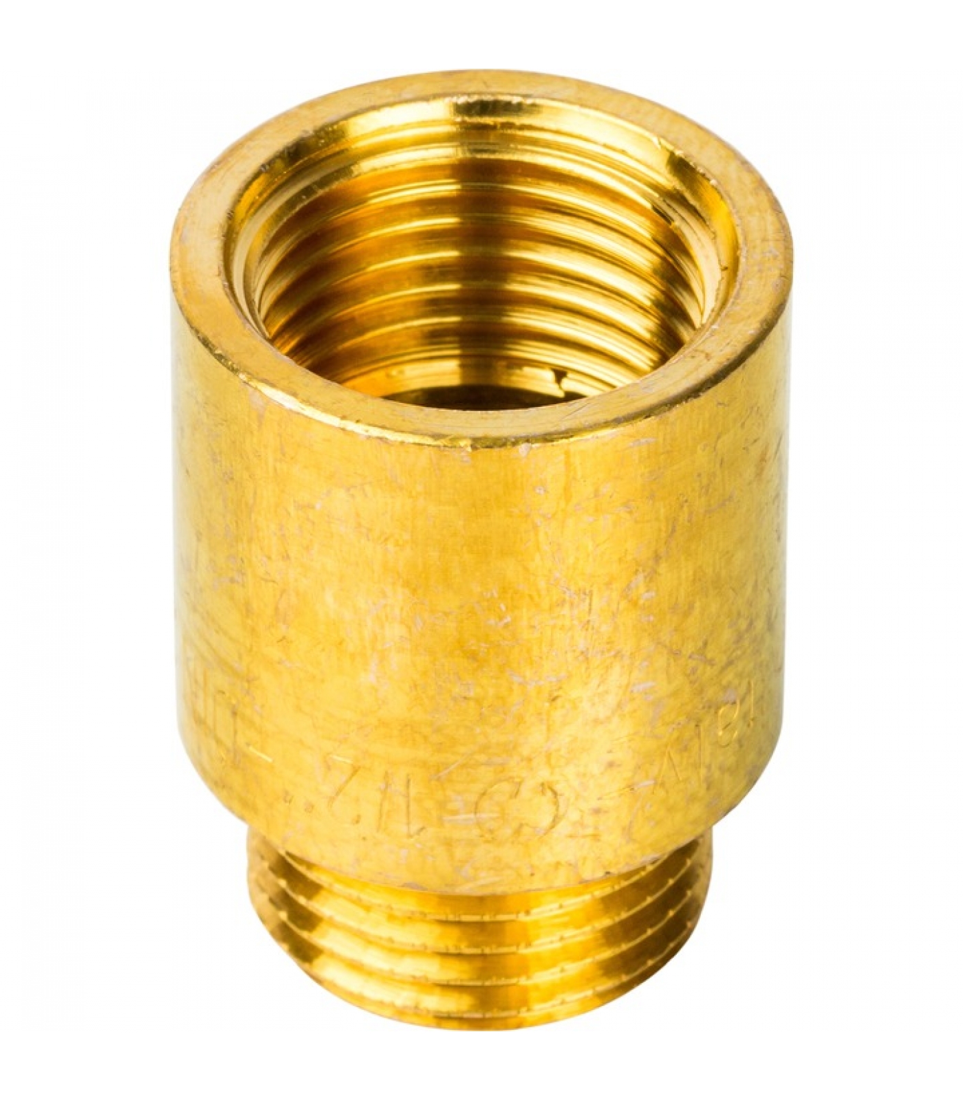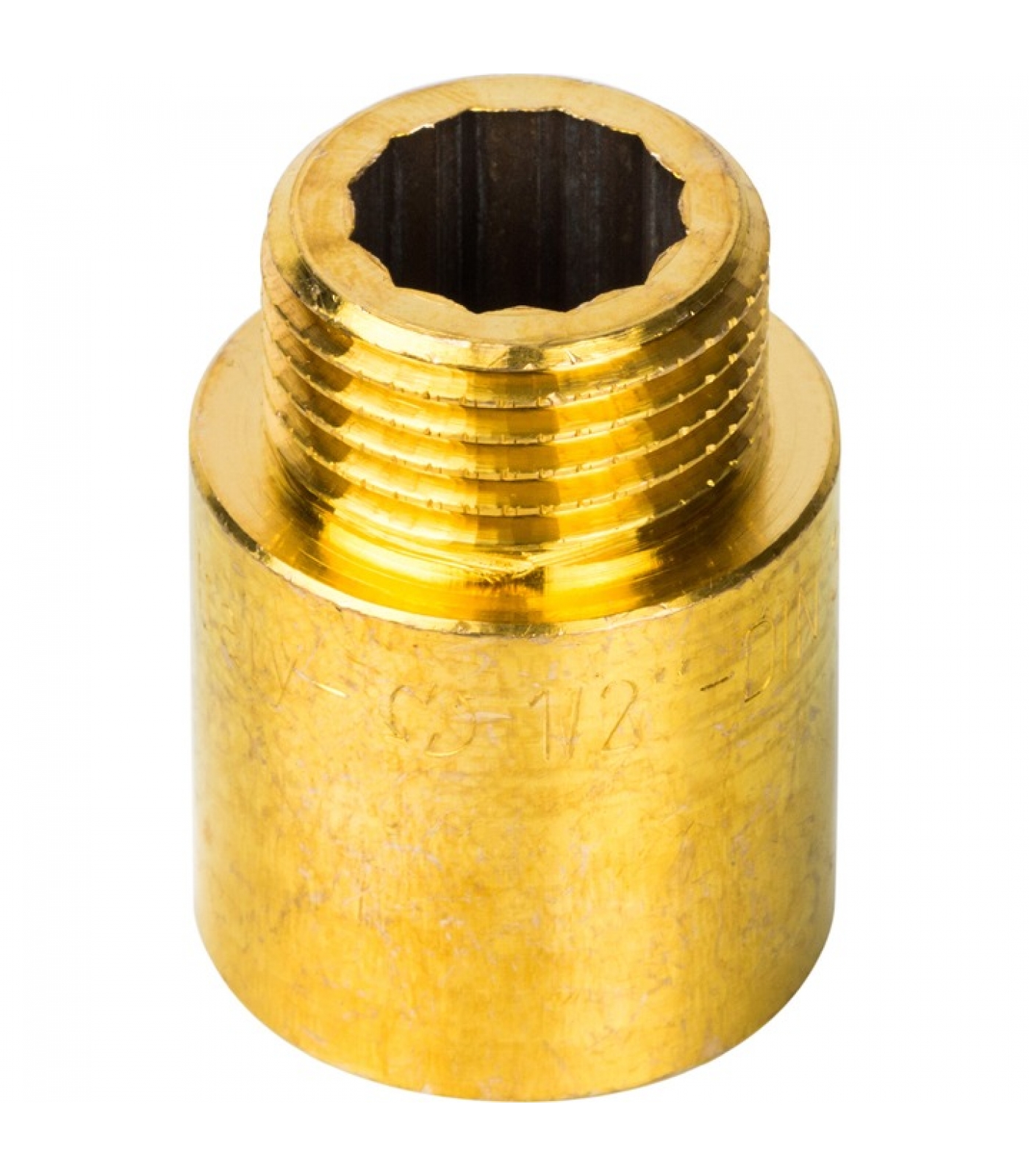 Удлинитель – фитинг, используемый в качестве соединительного элемента в трубах. Элемент представляет собой цилиндр с укороченной резьбой. С одной стороны она нарезана на внешней части корпуса, с другой – на внутренней. Внутренний диаметр изделия выполнен в виде многогранника для удобного и быстрого монтажа.