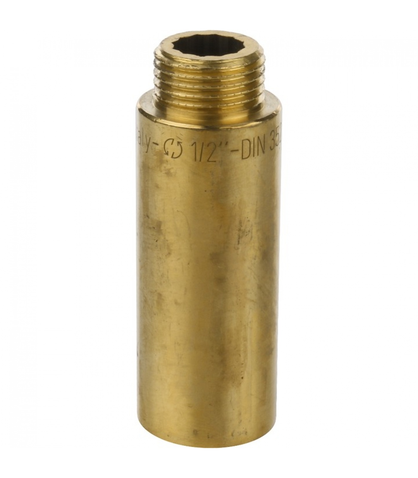 Удлинитель – фитинг, используемый в качестве соединительного элемента в трубах. Элемент представляет собой цилиндр с укороченной резьбой. С одной стороны она нарезана на внешней части корпуса, с другой – на внутренней. Внутренний диаметр изделия выполнен в виде многогранника для удобного и быстрого монтажа.