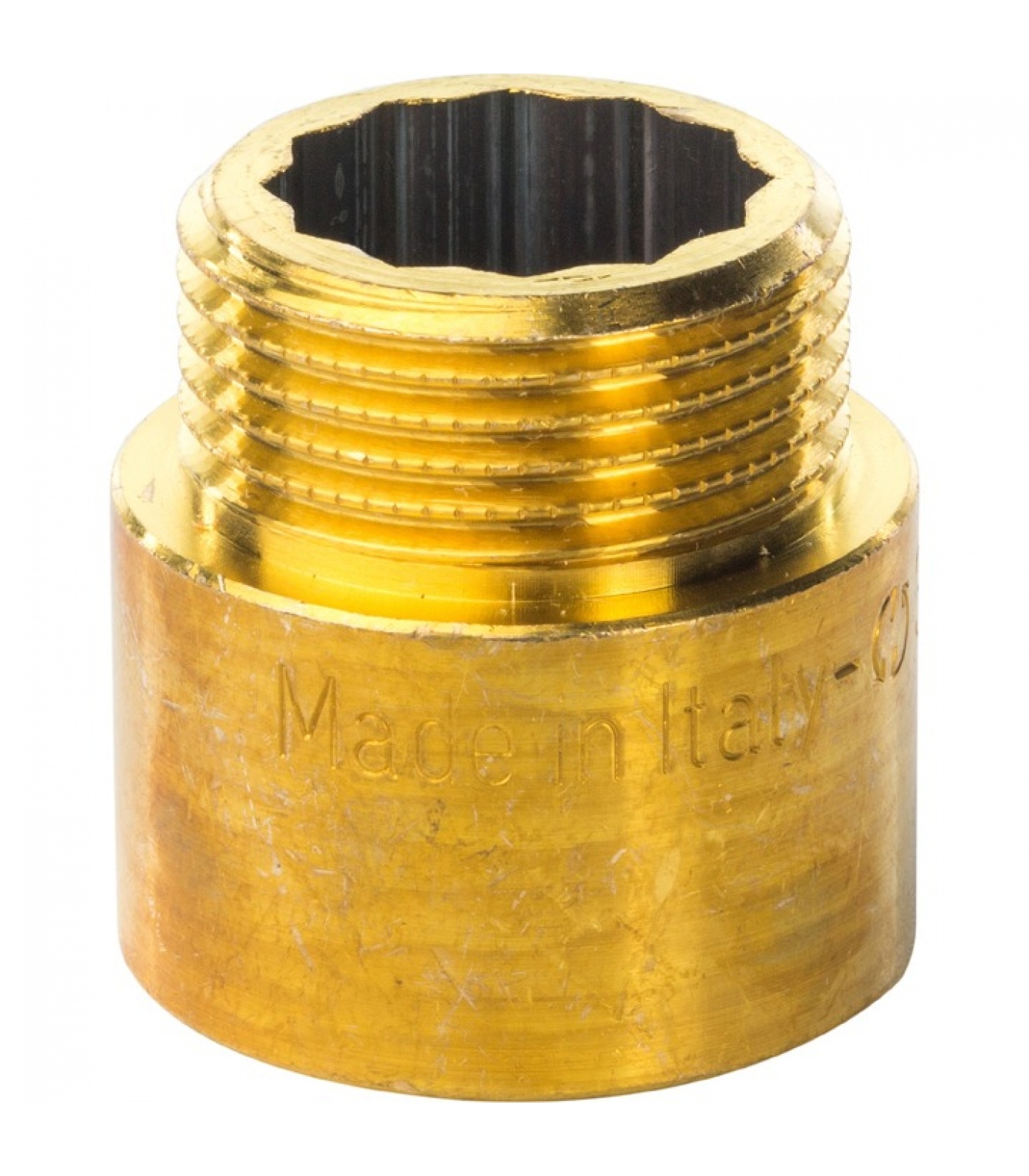 Удлинитель – фитинг, используемый в качестве соединительного элемента в трубах. Элемент представляет собой цилиндр с укороченной резьбой. С одной стороны она нарезана на внешней части корпуса, с другой – на внутренней. Внутренний диаметр изделия выполнен в виде многогранника для удобного и быстрого монтажа.