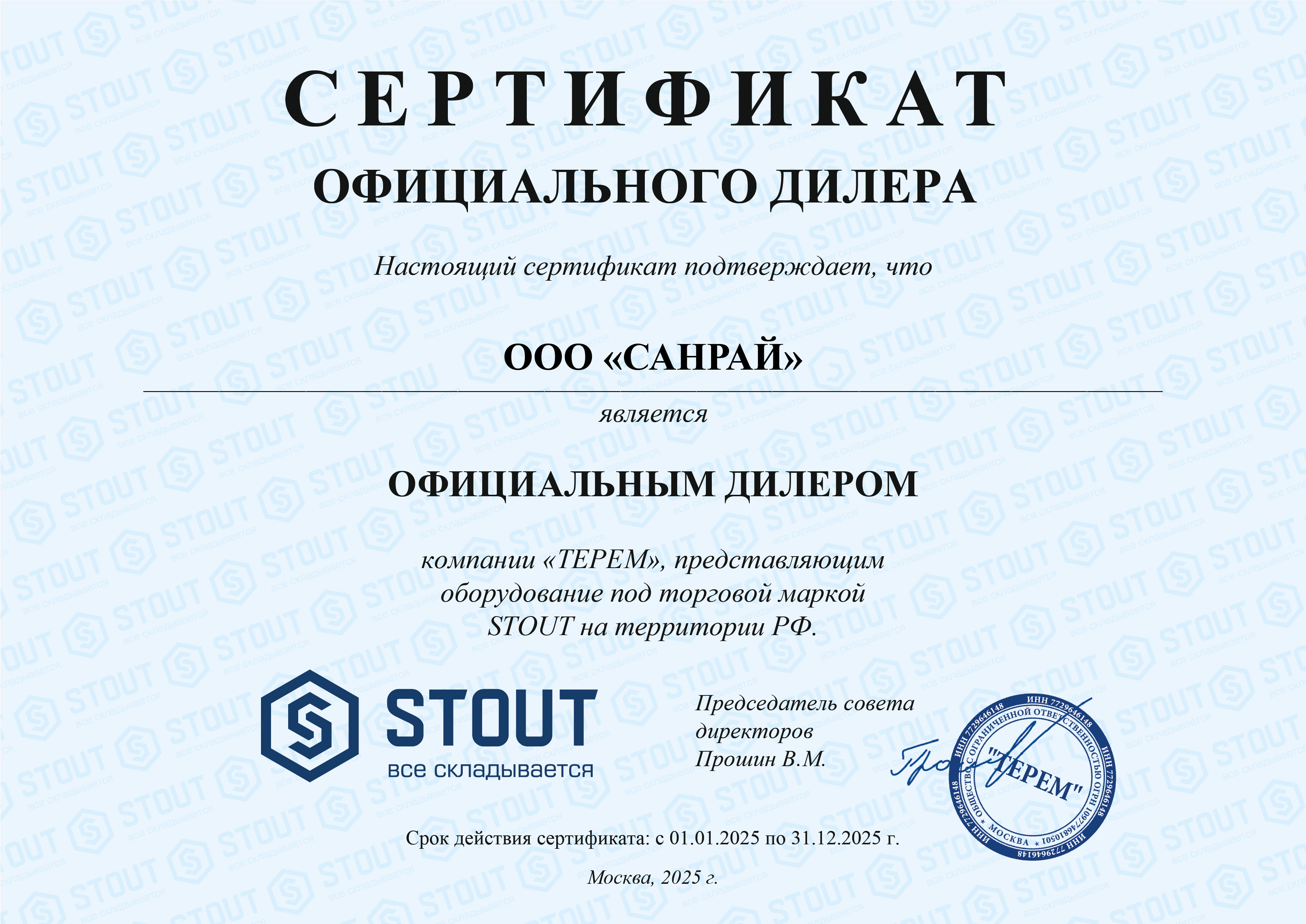 STOUT – современное оборудование высокого европейского качества, отвечающее последним достижениям научно-технического прогресса и требованиям российских стандартов. Производство компании STOUT - трубопроводная система, радиаторная, котельная и запорная арматура от официального дилера, в наличии со склада в Москве, доставка, постоянным клиентам значительные скидки.