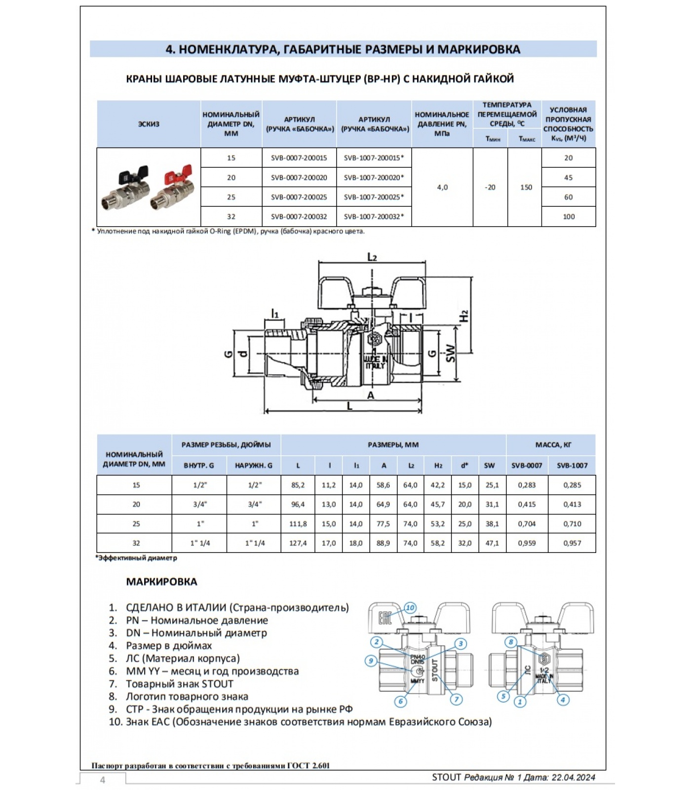 Краны шаровые из латуни полнопроходные, с резьбовым присоединением к трубопроводу, проходные, запорные, с ручным управлением, торговой марки "STOUT", тип SVВ применяются в качестве запорной и арматуры на трубопроводах систем питьевого, хозяйственного, и промышленного назначения, а также на технологических трубопроводах, транспортирующих жидкости, не агрессивные к материалам крана. Основные среды применения: холодное и горячее водоснабжение, отопление, сжатый воздух, жидкие углеводороды.