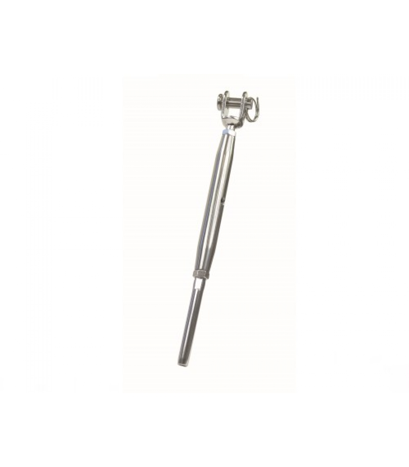 Закрытый сварной талреп 3 мм с вилкой для троса представляет собой винтовой регулятор натяжения тросовых, канатных и цепных растяжек. С одной стороны имеется вилка со стопорным пальцем и кольцом, а с другой - обжим на трос. Изготовлен талреп из аустенитной нержавеющей стали А4, устойчивой к воздействию высоких температур и агрессивных сред (кислоты, хлорка, соль).
