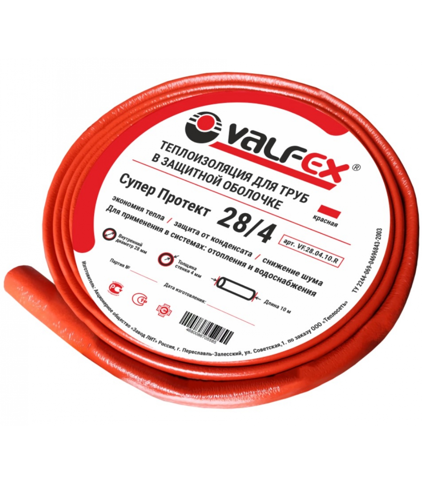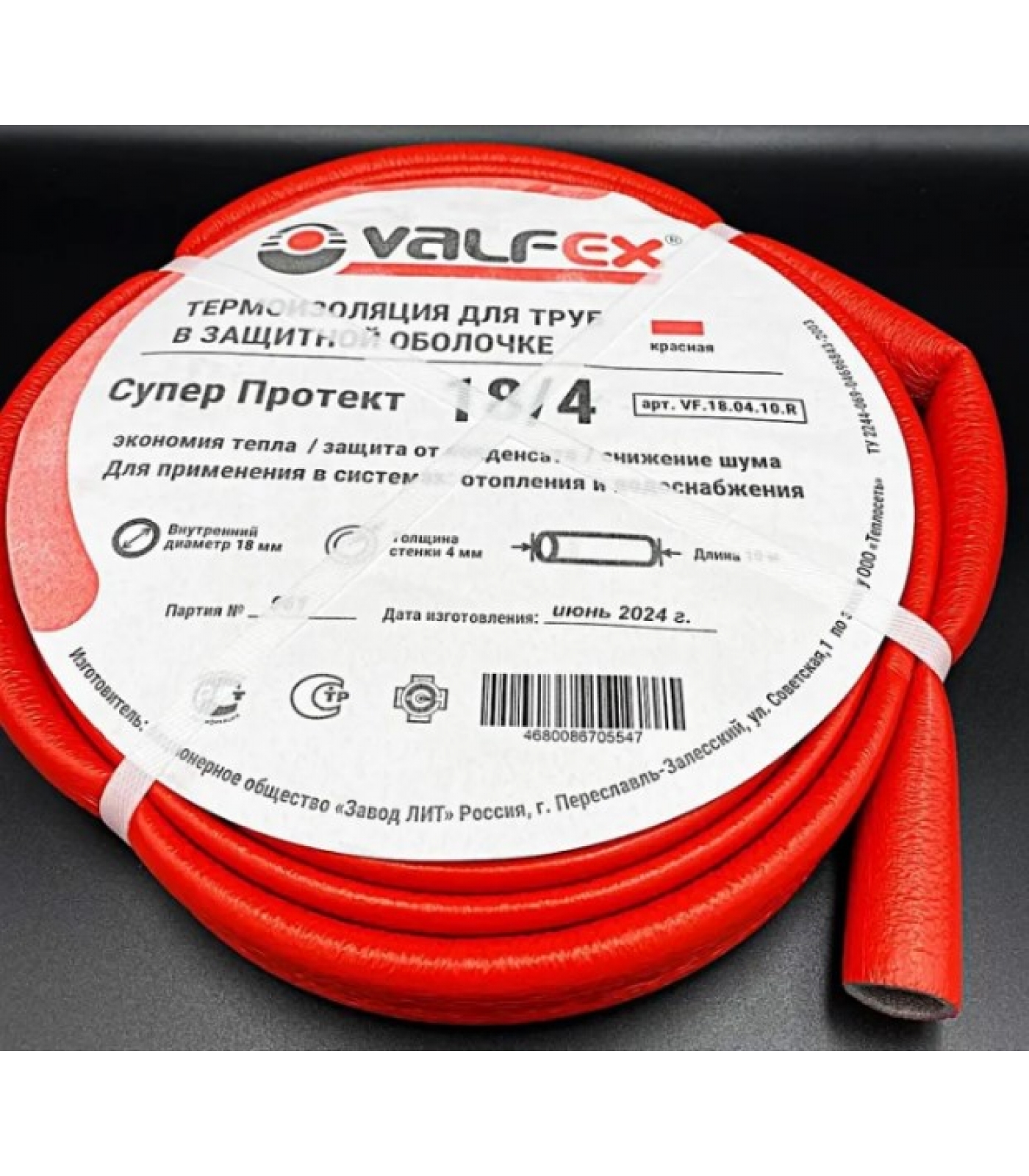 Теплоизоляция для труб Valfex в красной оболочке 18х4, бухта 10м