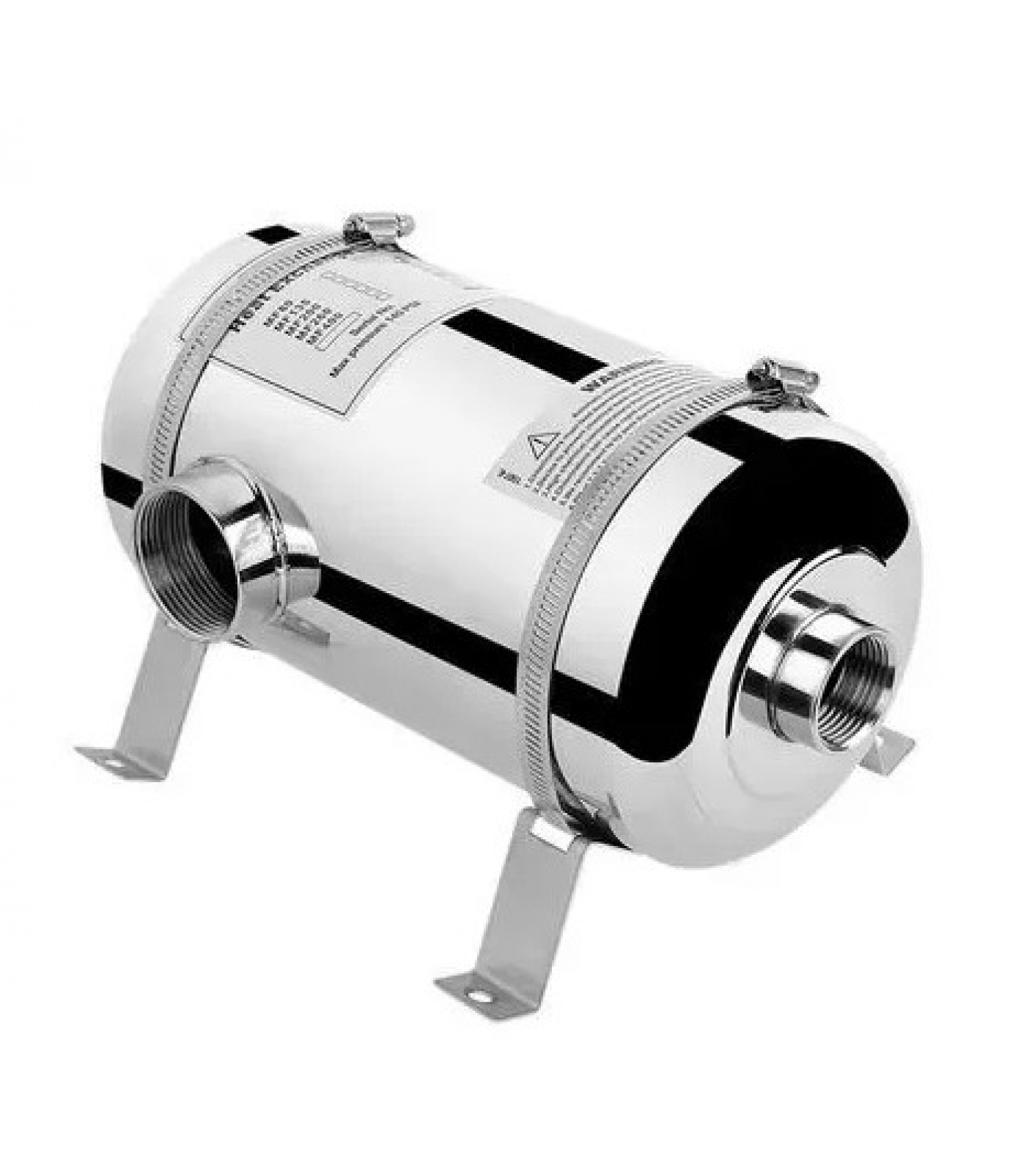 Теплообменник Laswim MF-80 - это оборудование для бассейна, предназначенное для нагрева воды и поддержания заданной температуры, возможно использование в воде с солёной водой. Подключается к нагревателям, таких как: газовые котлы, топливные бойлеры, тепловые насосы и солнечные панели. Не рекомендуется использовать для бассейнов с установленным хлоргенератором - хлорка разъедает любую сталь из нержавейки.