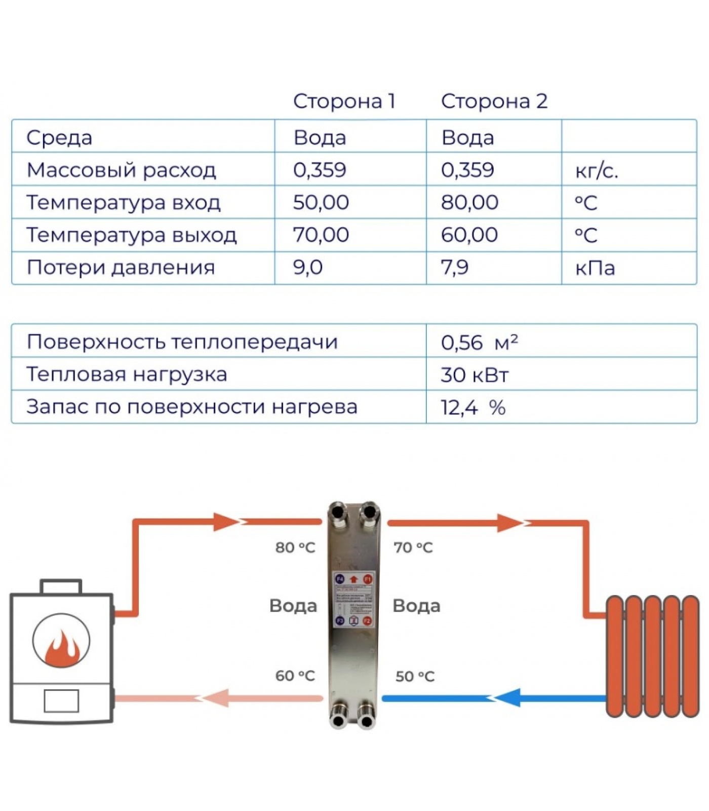 Теплообменник пластинчатый паяный TT20-30H-3.0, 30 пластин, 30 бар