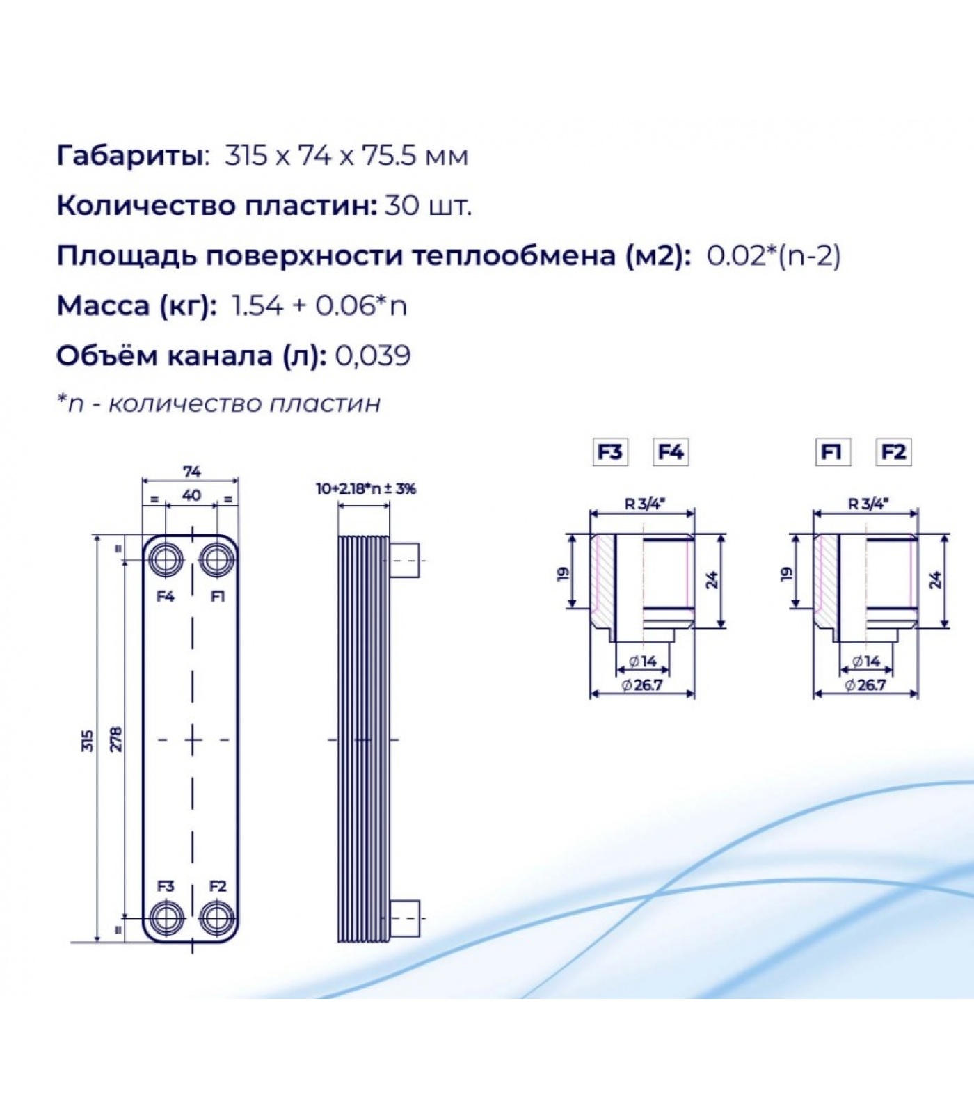 Теплообменник пластинчатый паяный TT20-30H-3.0