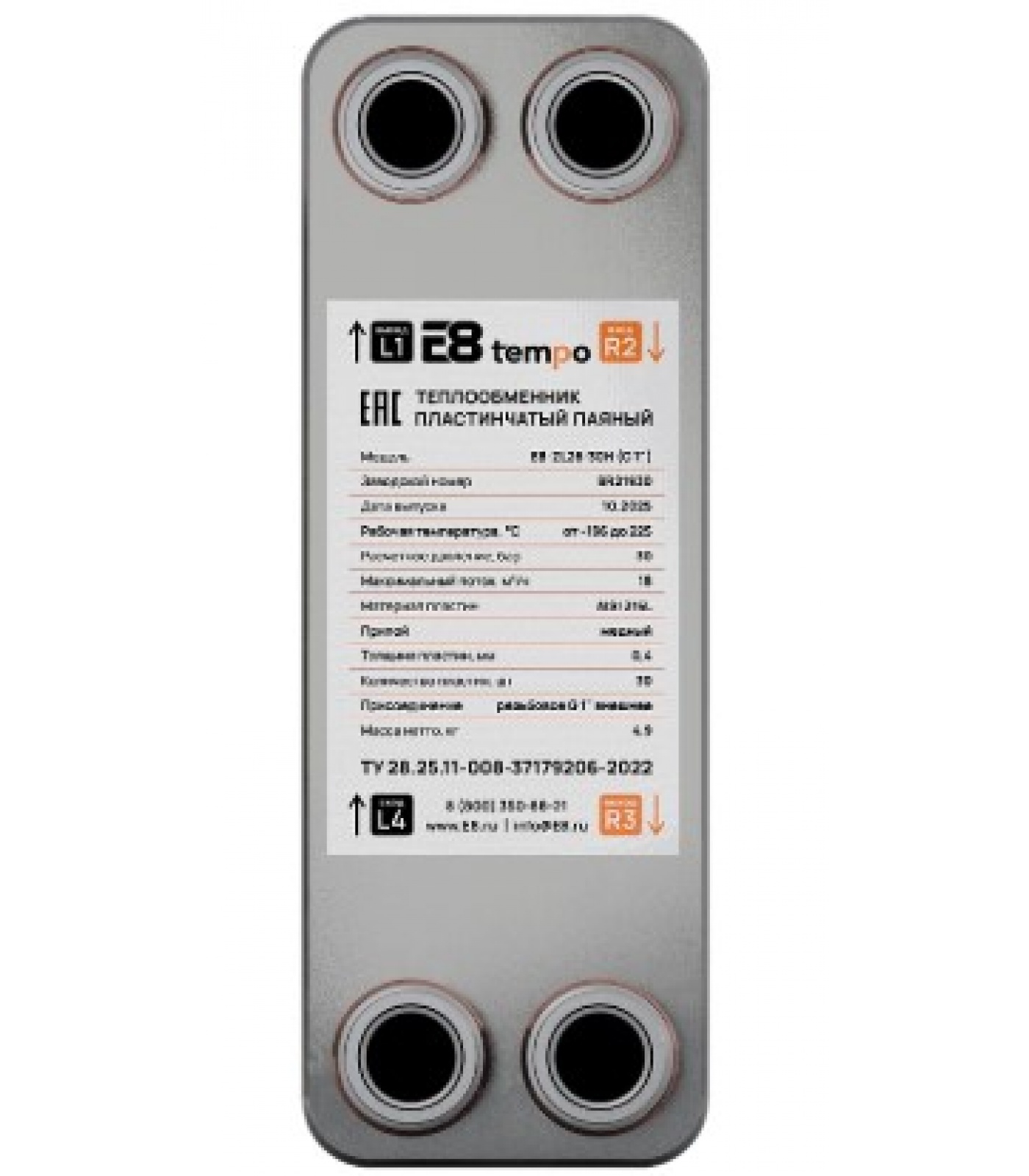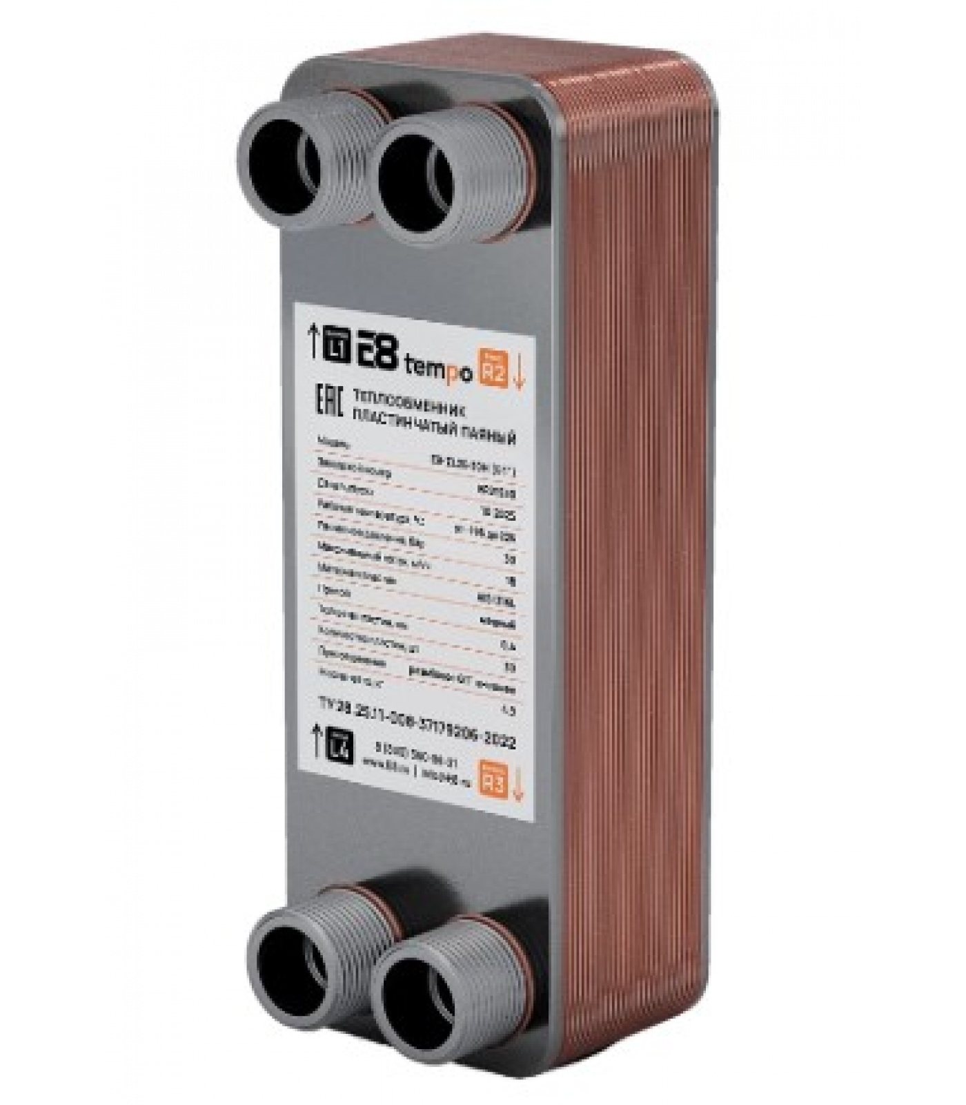 Теплообменник пластинчатый паяный E8 tempo E8-ZL26-30Н, G 1", 30 пластин, 135 кВт, 30 бар