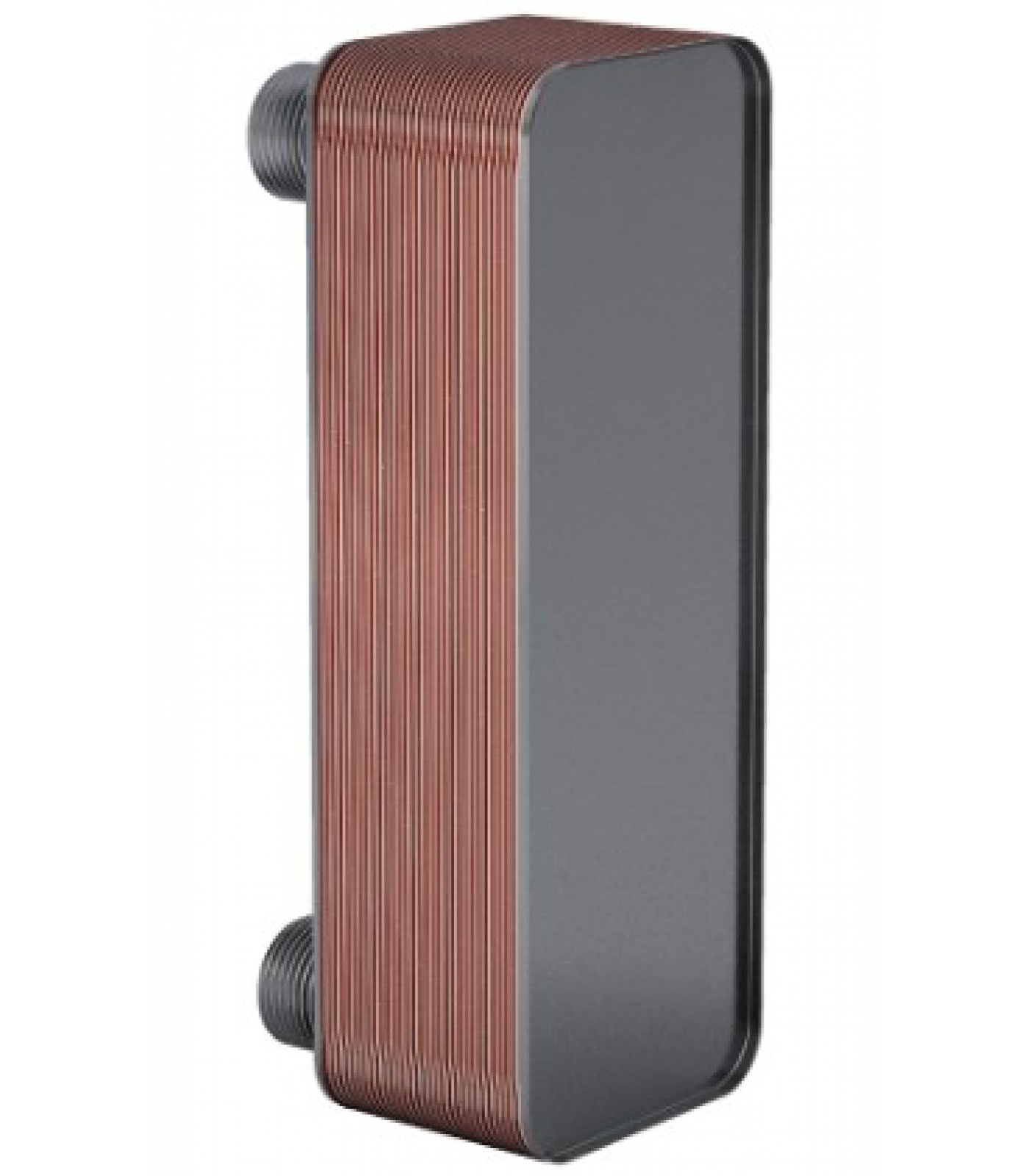 Конструкция паяного пластичного теплообменника E8-ZL26-30Н (G 1") включает 30 пластин толщиной 0,4 мм из нержавеющей стали AISI 316L, соединенных методом высокотемпературной пайки медным припоем, что обеспечивает надежное уплотнение и прочность в точках контакта без уплотнительных прокладок и массивных опорных плит, гарантируя максимальный срок службы и стойкость к высоким давлениям.