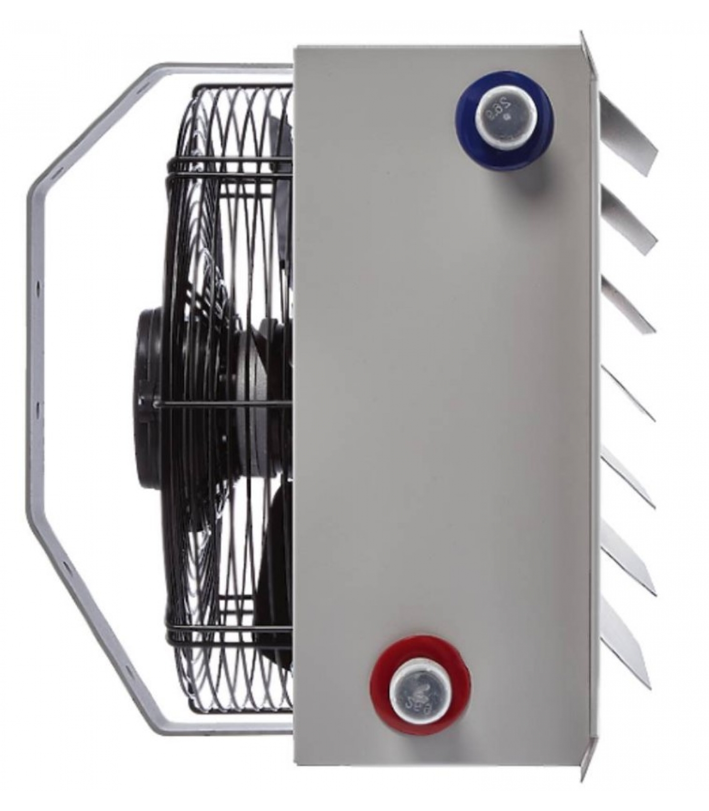 Водяной тепловентилятор устанавливается на стены, колонны или потолок при помощи кронштейна, который входит в комплект поставки. Кронштейн позволяет регулировать угол наклона тепловентилятор в горизонтальной и вертикальной плоскости.