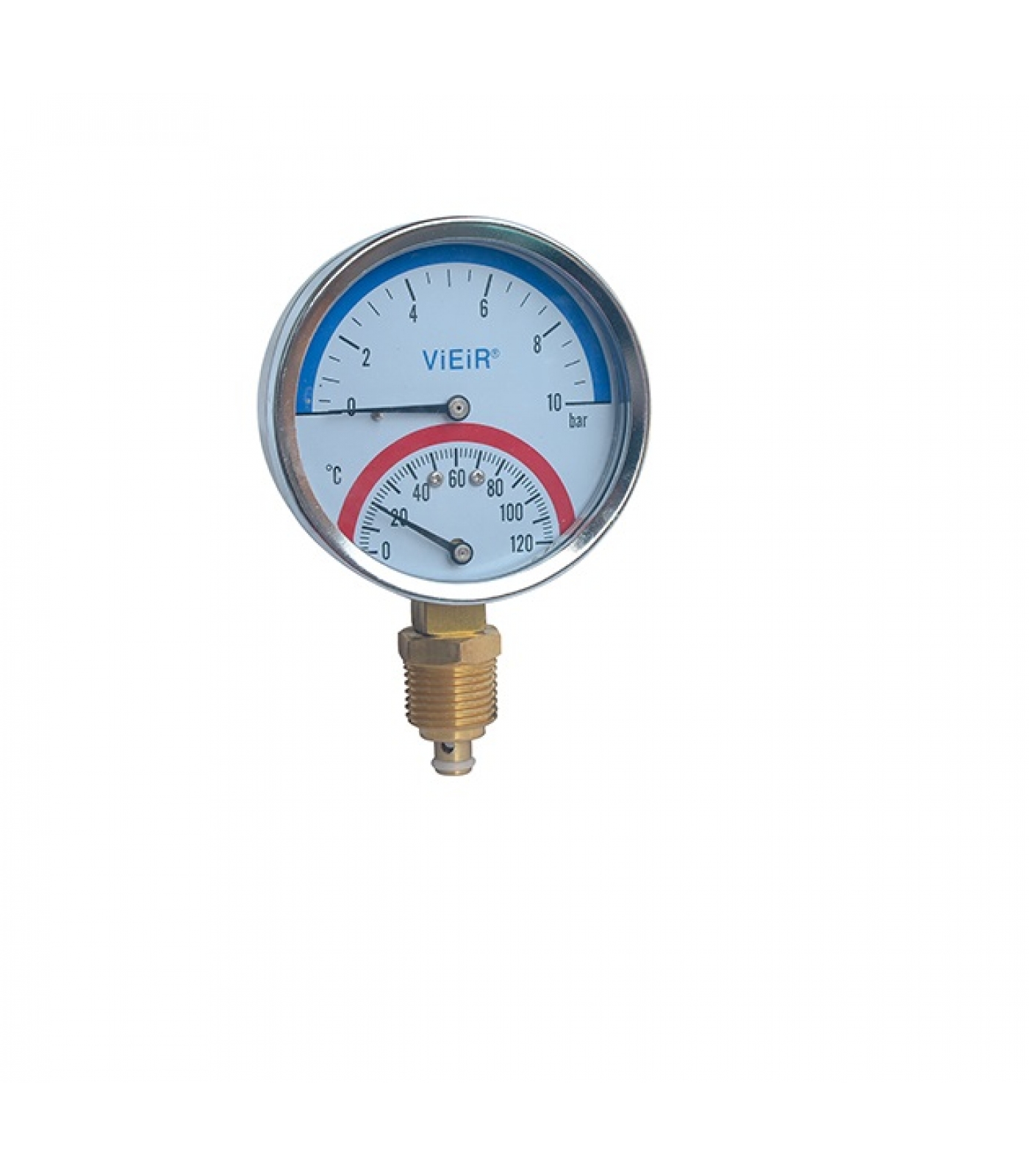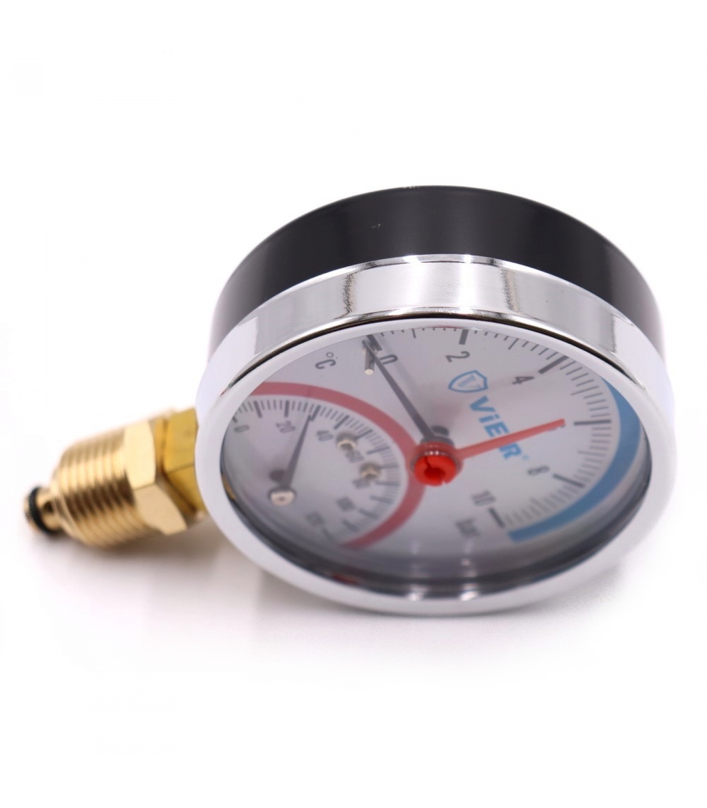 Термоманометр радиальный Vieir 80мм, 10bar, 120°C, 1/2", с автоматическим запорным клапаном