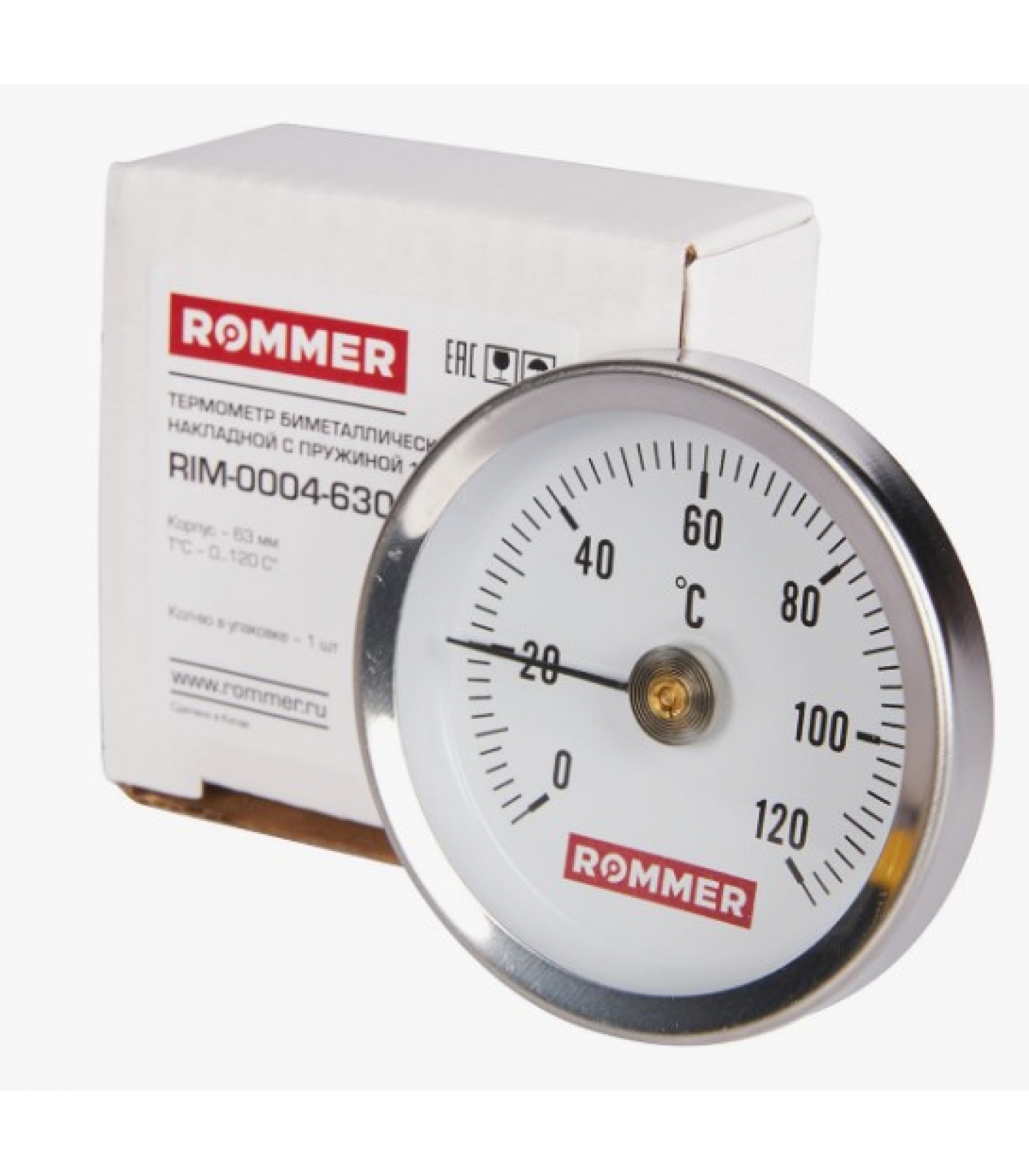 Термометр накладной Rommer 63мм, 0...120°C, класс 2, с пружиной, биметаллический